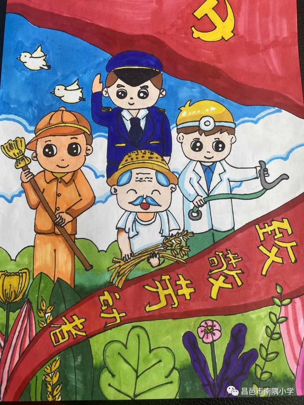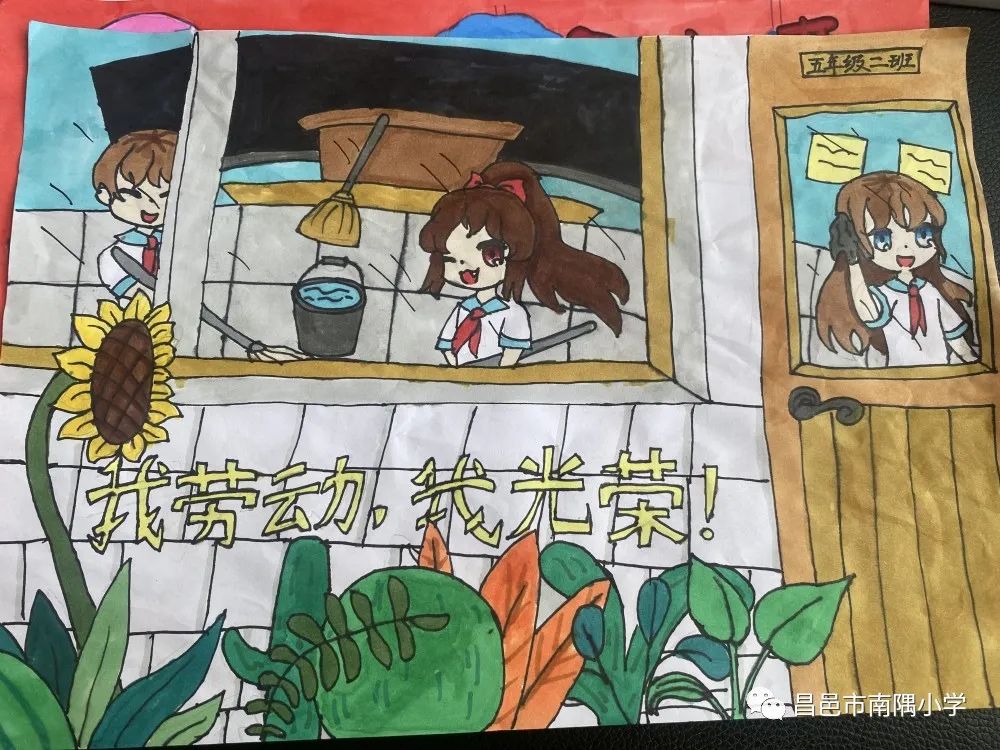五六年级的队员们用手中的画笔表达自己对劳动的理解,对劳动的热爱,对劳动美的诠释。