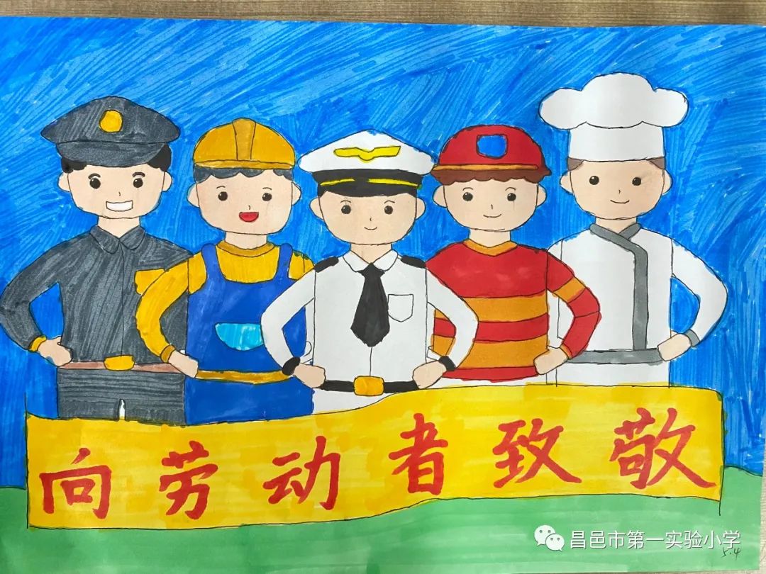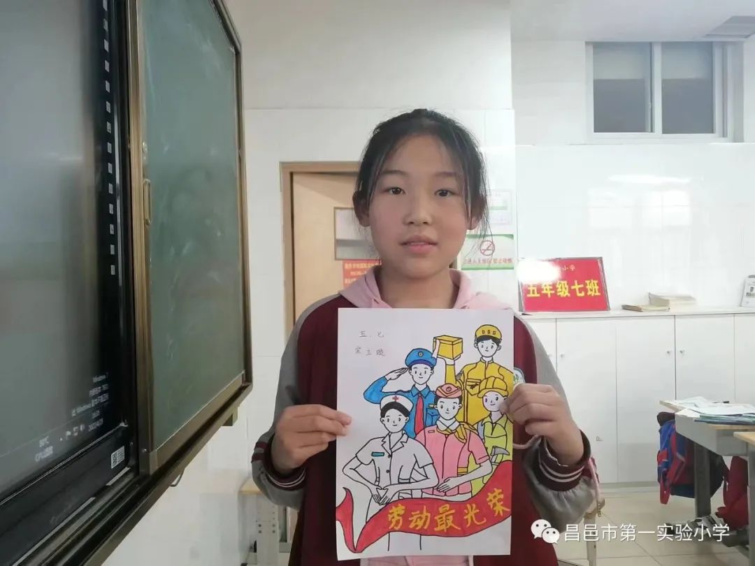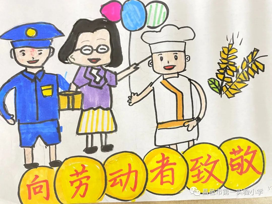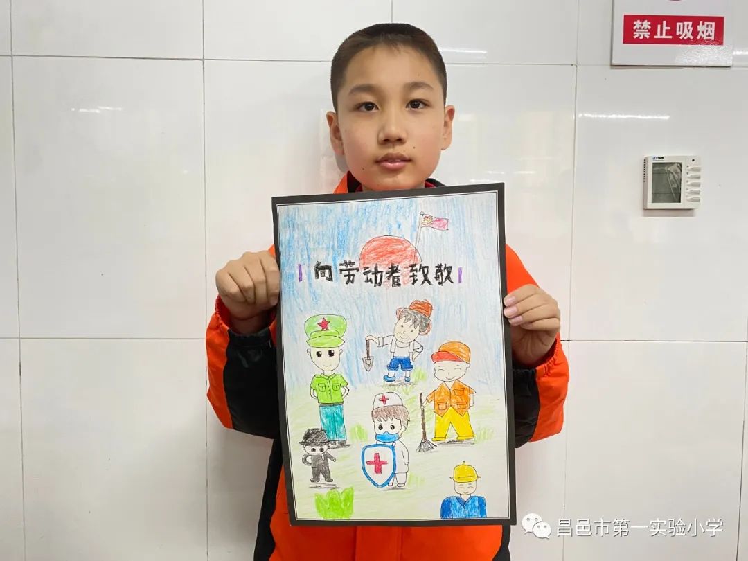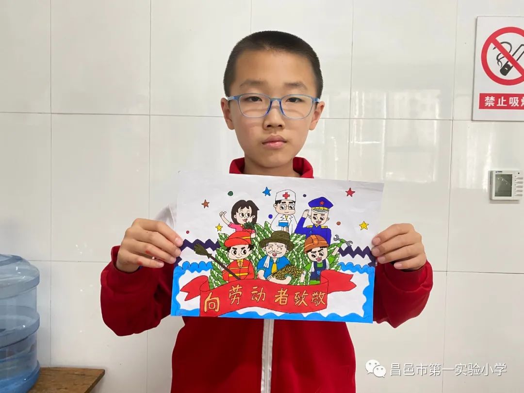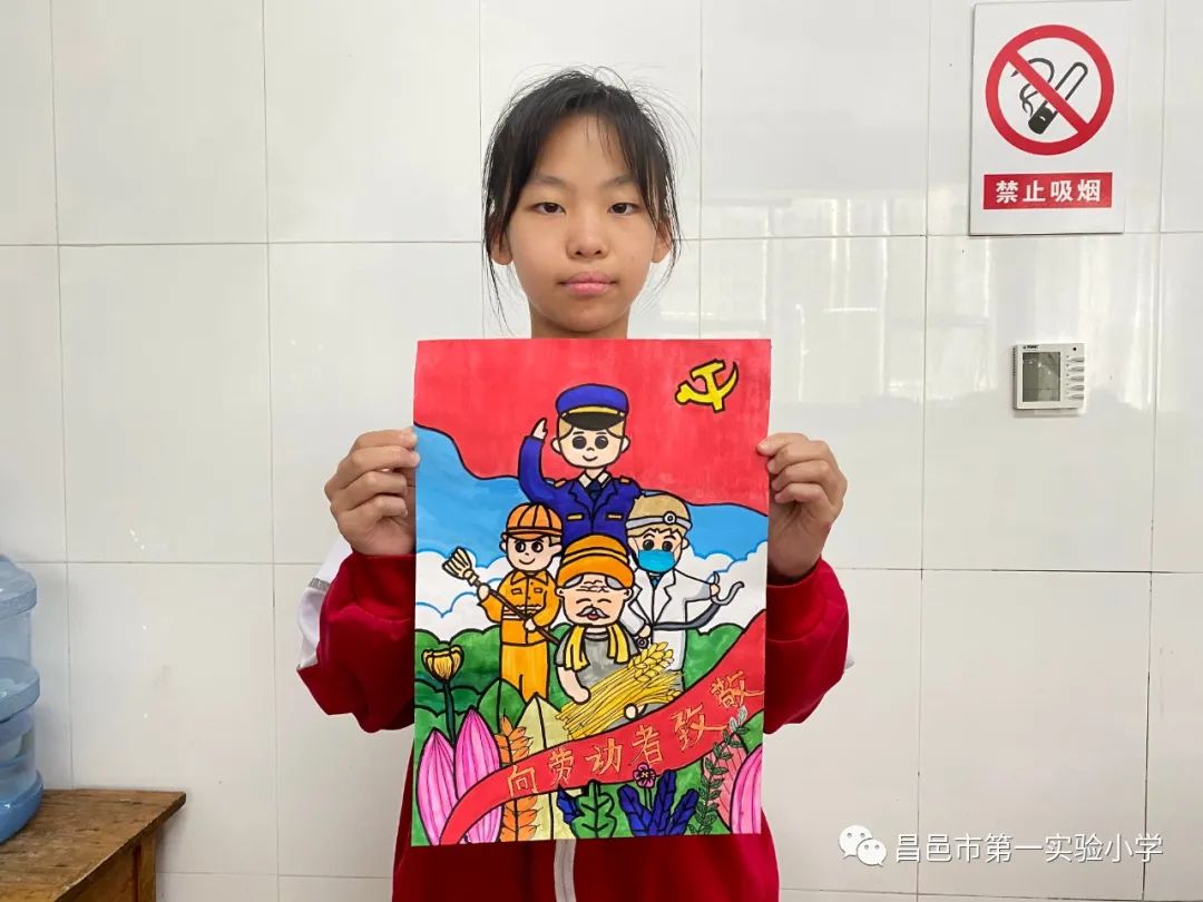 队员们用自己的小手,拿起手中的画笔来赞美劳动光荣,一份份设计新颖精美的图画,表达着队员们对劳动者的感谢与赞美之情。