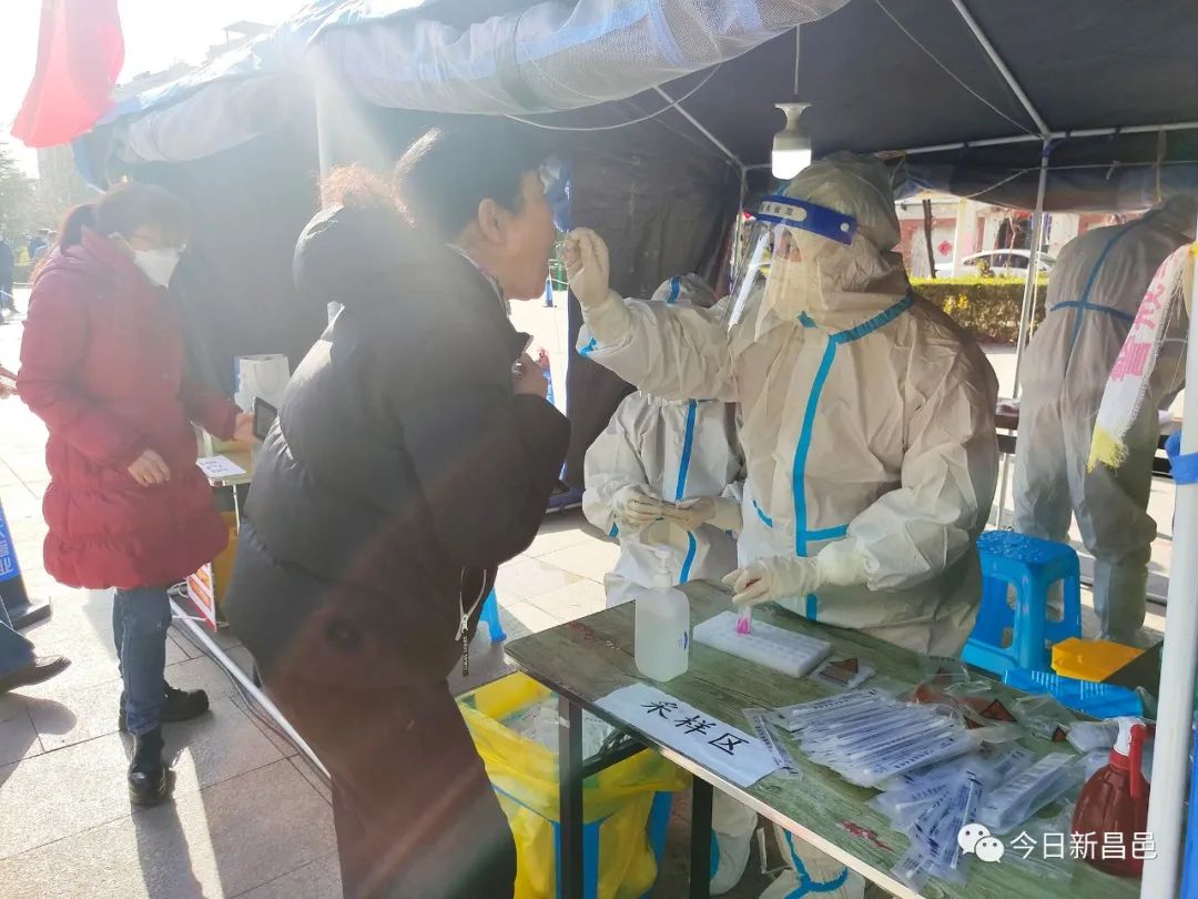按照规程,采样时医护人员每检一人就要手卫生一次,这看似简单的工作,每班需要重复几百遍,甚至上千遍,一天下来,姜晓娣的手指早已冻僵,防护面屏上也全是寒雾,但她克服重重困难,一丝不苟,全身心投入到核酸采样工作中,每轮采样都能保质保量的完成任务。为了减少去厕所的时间,姜晓娣尽量不喝水或少喝水,一轮采集下来,她的衣衫湿透,全身都浸泡着汗水,头发湿的像刚洗了澡,口干舌燥,卸下N95口罩后脸上是深深的印痕,操作却要眼疾手快不曾停歇,她和支援的同事们都在挑战自己的生理极限,即便如此,她们从没有说一句“太冷了”、“太累了”,有的只是团结一致,共克时艰的坚定意志。