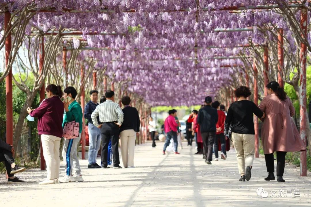 中国(昌邑)北方花木城紫藤花开正艳,成为高铁小镇沿线一道靓丽风景,吸引市民游客专程前来拍照“打卡”。