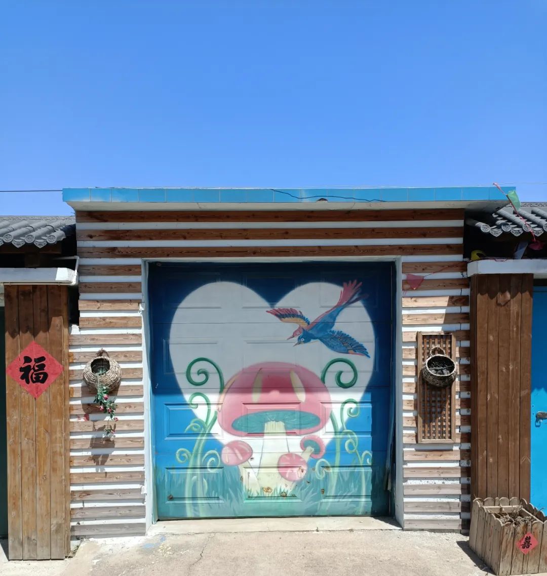 那位大姐笑了,五月的阳光灿烂也明媚,我看看那间涂鸦散漫无边的屋子,再看看那位穿着火红卫衣的大姐,心想她怎么不满脸“闷混”的问一句,恁找谁恁是干什么的恁有没有招呼啊——嗯,这个小村还挺神秘!