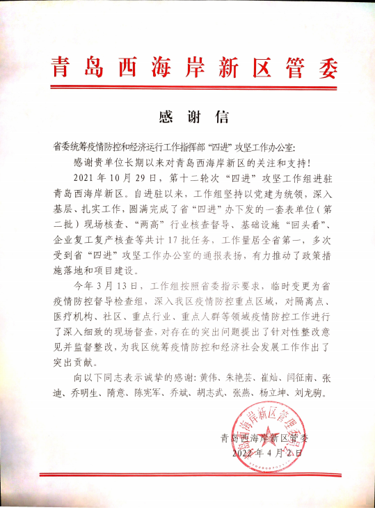 首页 行政动态 青岛黄岛西海岸新区给昌邑发来感谢信,为其疫情防控监督做贡献 青岛黄岛西海岸新区给昌邑发来感谢信,为其疫情防控监督做贡献 昌邑之窗 发布于 2022年5月8日 评论(0) 阅读(329) 感谢信