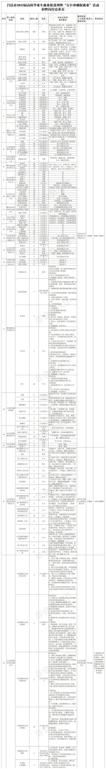 昌邑市2022届高校毕业生就业促进周招聘岗位需求表