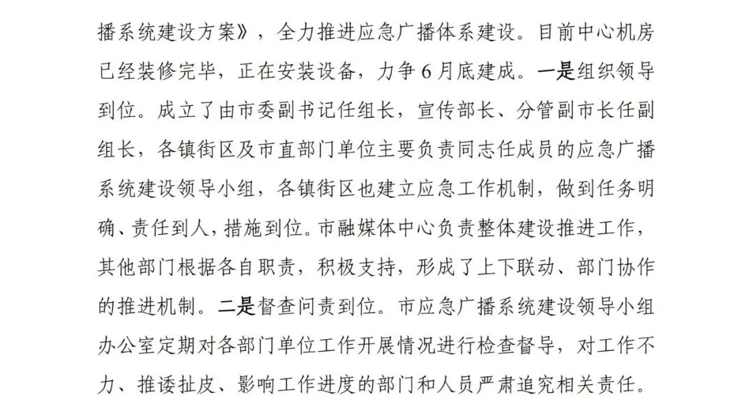 首页 行政动态 山东省广播电视局推广昌邑市应急广播系统建设工作 山东省广播电视局推广昌邑市应急广播系统建设工作 昌邑之窗 发布于 2022年5月8日 评论(0) 阅读(371) 应急广播系统承载党和政府应对突发公共事件和自然灾害的信息发布传播功能。日前,山东省广播电视局2022年第3期《应急广播工作简报》刊发昌邑市应急广播建设经验做法,并作为典型案例在全省交流推广。