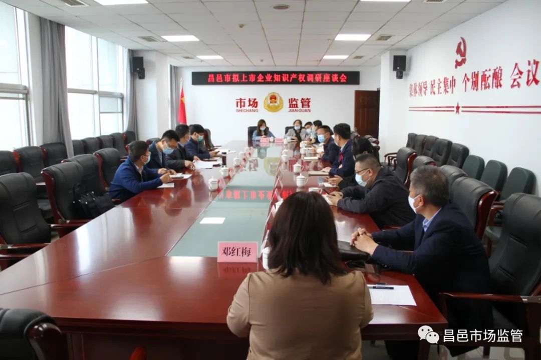 5月13日,潍坊市知识产权保护中心主任王大海等一行5人来昌就探索帮扶拟上市企业精准步入专利申请快速通道,充分发挥知识产权在企业创新发展中的支撑引领作用等工作开展调研并召开座谈会。市市场监管局局长梁永彦、分管领导常立森、知识产权事业发展中心、商广科全体工作人员及部分拟上市企业知识产权负责人参加调研和座谈。