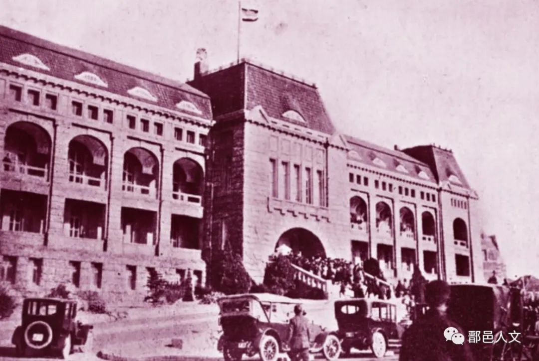 1922年12月10日,中国政府收回青岛主权。图为接收当日胶澳督办公署门前停驻的车辆。