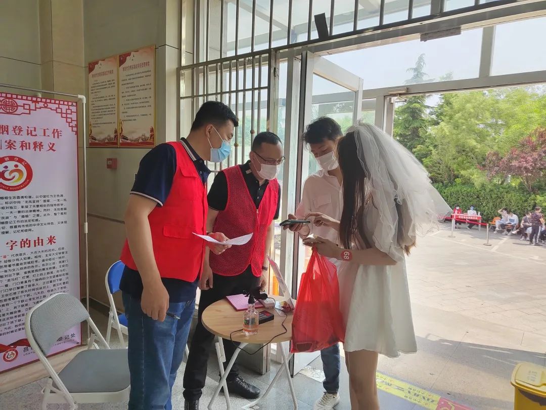强化疫情防控。提前对婚姻登记大厅进行消杀;设立室外候登区,最大限度减少人员扎堆;严格执行佩戴口罩、扫码查码、查验核酸、测温等各项疫情防控措施;合理控制大厅人数,保证每次办理对数不超过8对。