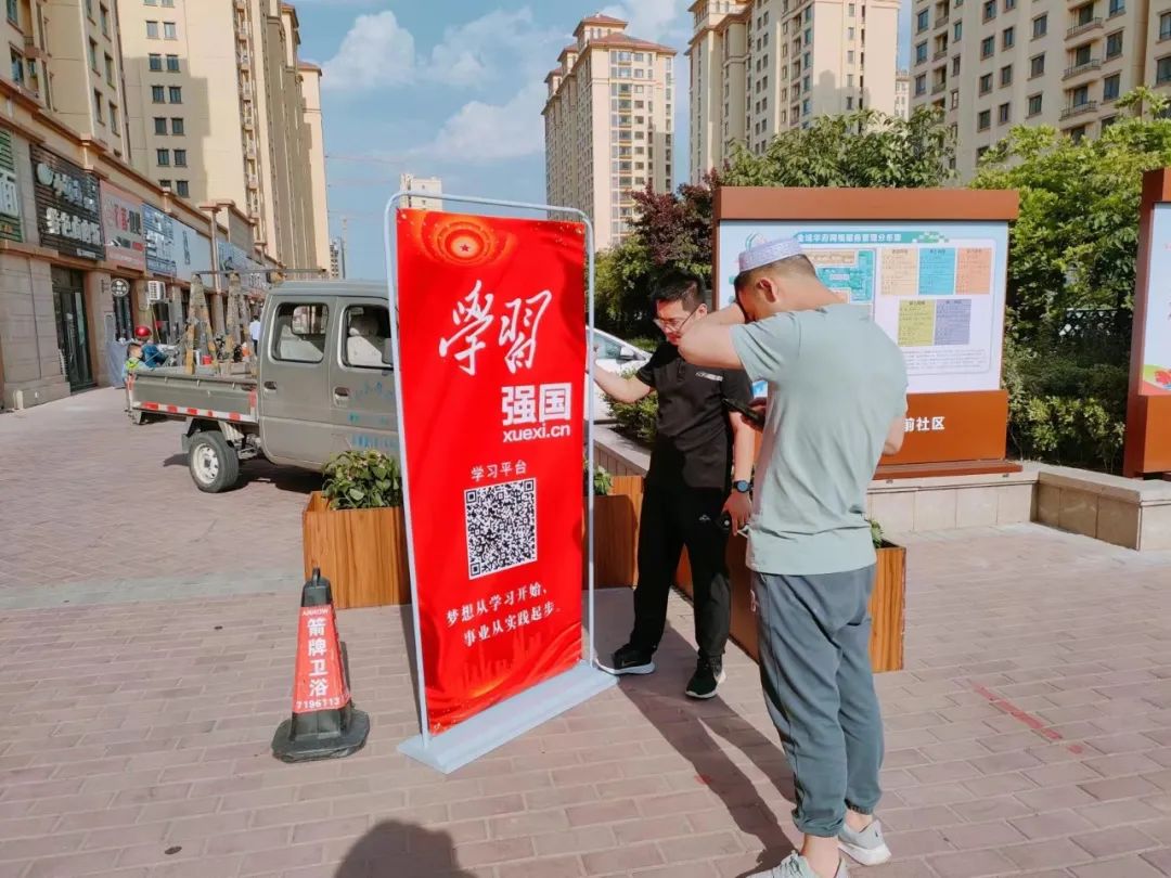 在府前社区金域华府网格党群服务站,社区工作人员、物业工作人员、青年学生代表、居民代表、网格员等共聚一席,分享各自层面学习强国推广经验,对推广过程中存在的梗阻问题提出意见建议。同时还开展了面对面答题PK,以趣味性活动引发现场群众参与学习的兴趣,现场对答题内容纷纷出谋划策,并在线下打卡点进行打卡。
