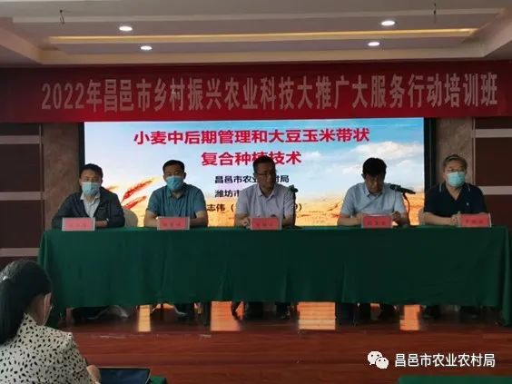 5月23日上午,昌邑市2022年乡村振兴农业科技大推广大服务行动培训班正式开班,潍坊市农技推广中心副主任王焕之、市局科教科科长刘善同到会指导,传达上级精神要求;同时邀请省农科院研究员张卫华、潍坊农科院小麦研究所张志伟进行授课。