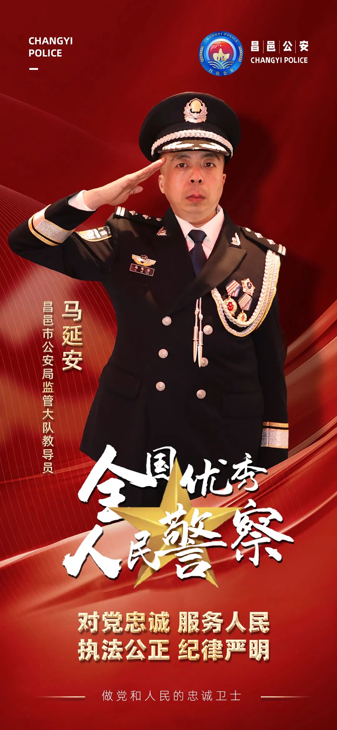 首页 行政动态 昌邑民警马延安当选全国优秀人民警察称号 昌邑民警马延安当选全国优秀人民警察称号 昌邑之窗 发布于 2022年5月26日 评论(0) 阅读(597) 全国公安系统英雄模范立功集体表彰大会 5月25日上午,全国公安系统英雄模范立功集体表彰大会在北京召开,隆重表彰近5年来在各项公安工作中作出突出贡献的先进集体和个人。 昌邑市公安局监管大队教导员马延安榜上有名,被表彰为“全国优秀人民警察” 马延安,1979年出生,中共党员,2000年参加公安工作,现为昌邑市公安局监管大队教导员。2011年7月,32岁的马延安从山东省北墅监狱调到昌邑市公安局监管大队工作,担任管教民警。多年来,他以共产党员的高尚品德和人民警察的赤诚之心投身监管,在平凡的工作岗位上做出了不平凡的业绩,尽展了高墙内“特殊园丁”的风采。先后被授予全省优秀人民警察、潍坊市优秀共产党员、全国公安监管工作成绩突出个人等荣誉称号,并荣记个人二等功1次、个人三等功3次。5月25日,在北京举办的全国公安系统英雄模范立功集体表彰大会上,他光荣获评“全国优秀人民警察”并受到表彰。 5月25日,昌邑市公安局组织观看了全国公安系统英雄模范立功集体表彰大会。会后,全市公安民警辅警纷纷表示,表彰大会鼓舞斗志,催人奋进,要深入学习贯彻表彰大会精神,紧紧围绕捍卫政治安全、维护社会安定、保障人民安宁的新时代使命任务,敢于担当作为,争当标杆模范,以实际行动迎接党的二十大胜利召开。 ▌转载请注明出处;未经允许,不得对标题、文章内容进行删改 ▌制图:王翔南 ▌编辑:杨爽 ▌审核:郭蕾 ▌投稿:cygaxck@163.com