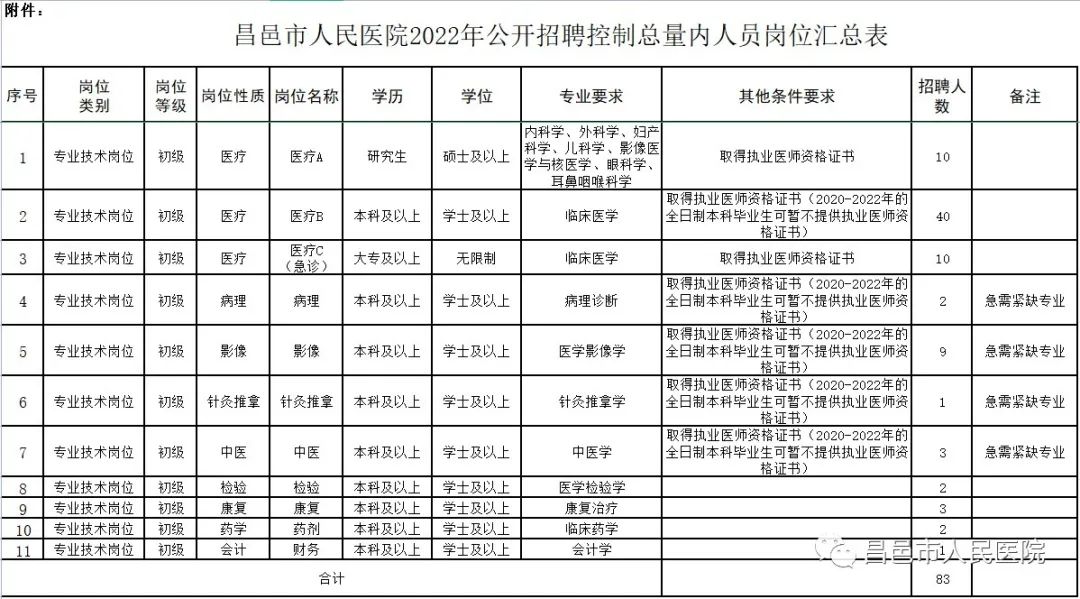(六)岗位要求的专业及其他条件(详见附件《昌邑市人民医院2022年控制总量内人员岗位汇总表》)