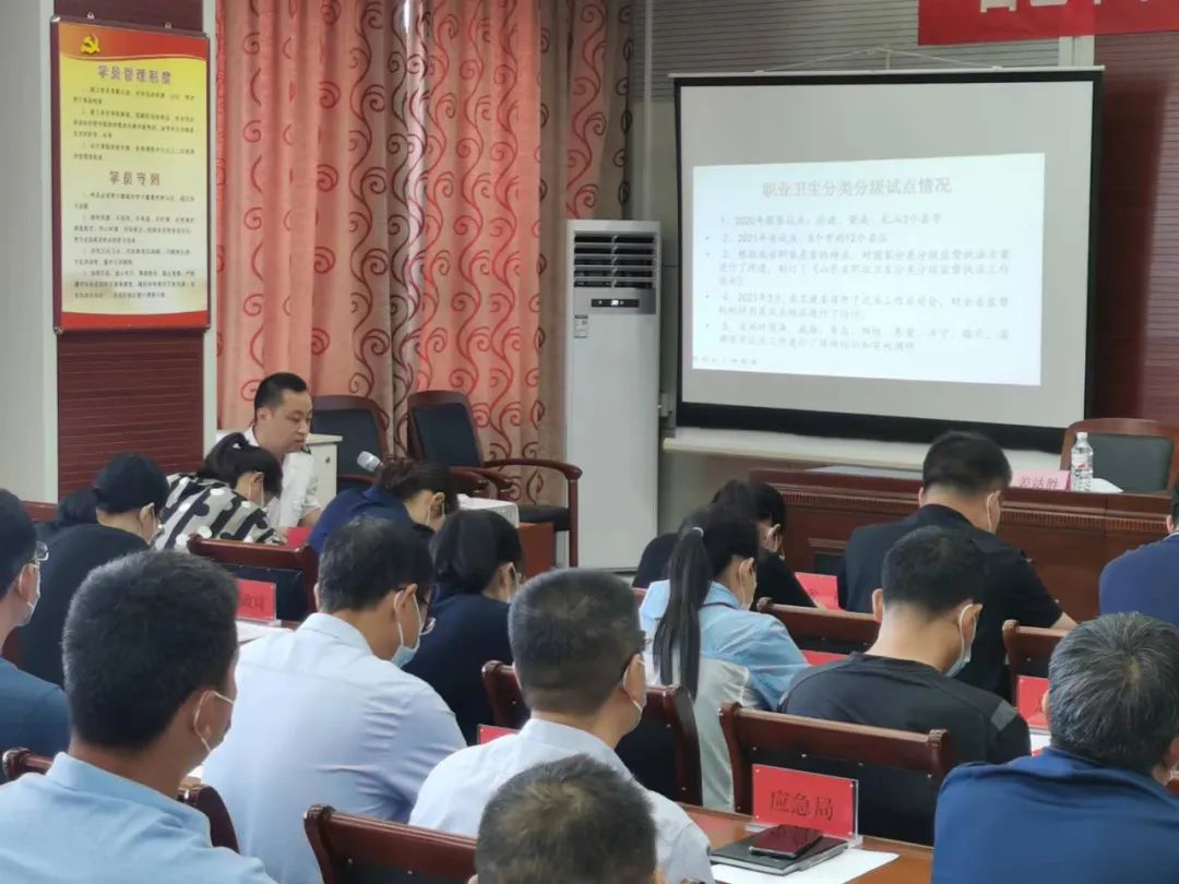 最后,市卫生综合执法大队工作人员对参会人员进行了职业卫生分类分级监督执法试点工作专题培训。