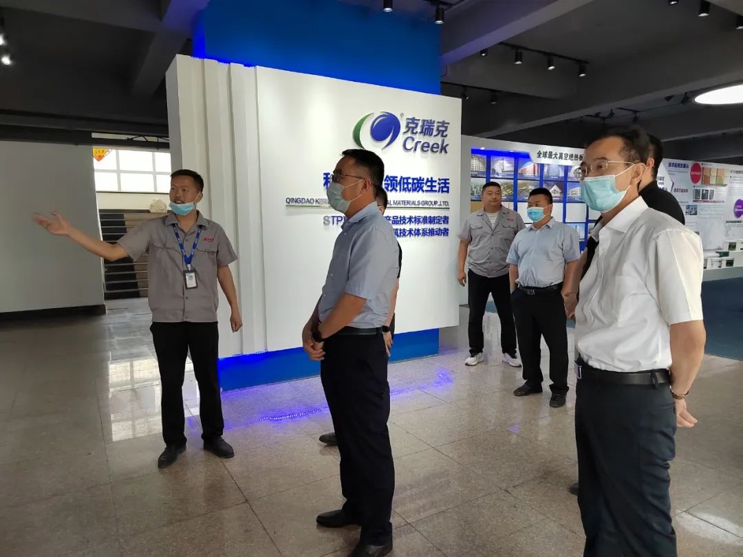 在青岛科瑞新型环保材料集团有限公司,考察组一行首先参观了企业展厅,在解说人员的引领下详细了解了企业架构及发展历程。