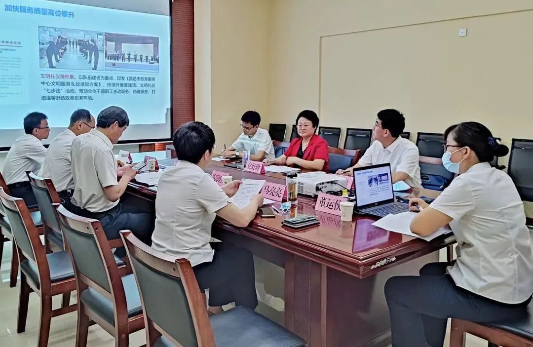 调研组一行观摩“1+6+X”智能应用平台建设运行情况后,到政务服务大厅分别对商事登记、社会事务、投资项目领域的亮点工作、“帮办代办+志愿者”服务模式、大厅“洗脸”运动、满意度回访中心建设等情况进行了实地调研,并进行座谈交流。昌邑市行政审批服务局局长马亮亮同志对今年以来的工作开展情况进行了详细汇报。