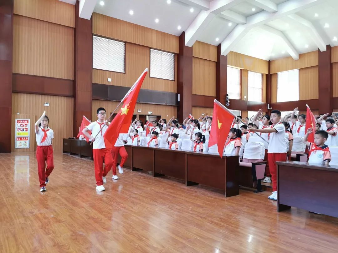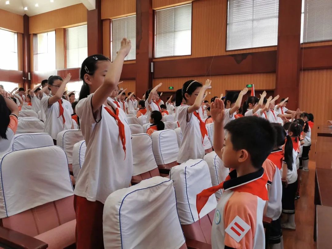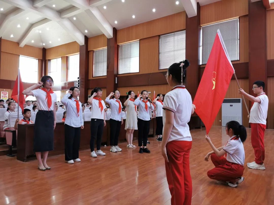 随着新队员们加入少先队,8支少先队中队成立了。8位老师受聘为少先队中队辅导员。当新队员代表从辅导员手中接过庄严的队旗,全场响起了热烈的掌声。
