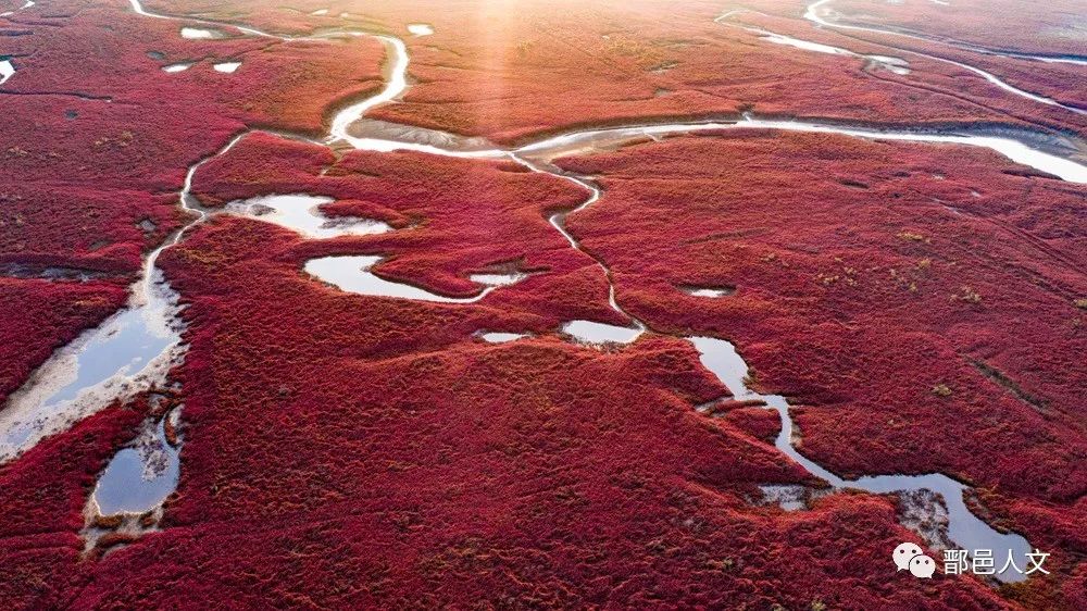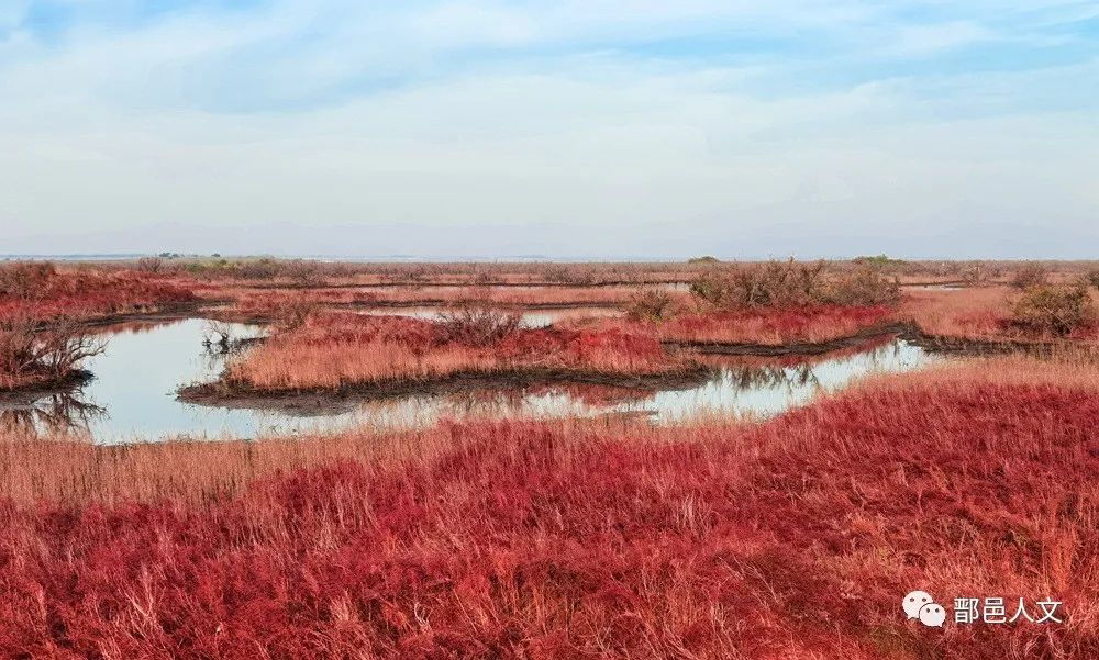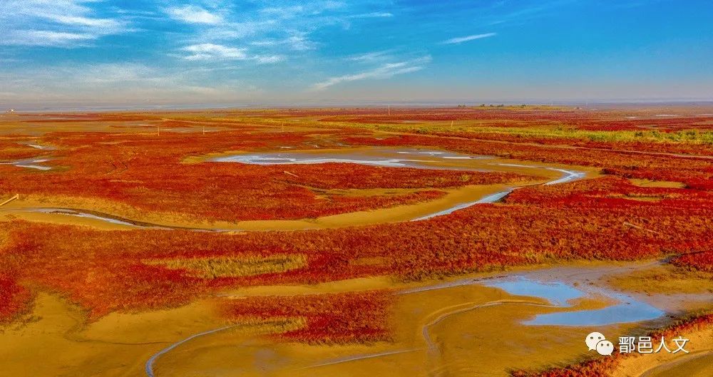 每至秋季,黄须菜就会随着气温的降低呈现出妖娆的红色,为昌邑的沿海滩涂披上华丽的“秋装”。