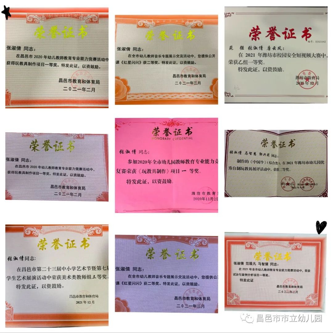 做一名研究型教师,在日常的教学中,积极地钻研教材教具,多年来制作了健康、语言、社会、科学、艺术五大领域的教具材料,积极钻研《指南》、《纲要》,结合不同年龄阶段的幼儿的特点,制作出多功能玩教具,在昌邑市玩教具比赛中获得一等奖;获得潍坊市幼儿园教师教育专业能力竞赛“自制玩教具”一等奖。参加潍坊市第八届幼儿园青年教师教育专业能力竞赛复赛,获得“活动设计试讲与案例分析”项目三等奖。