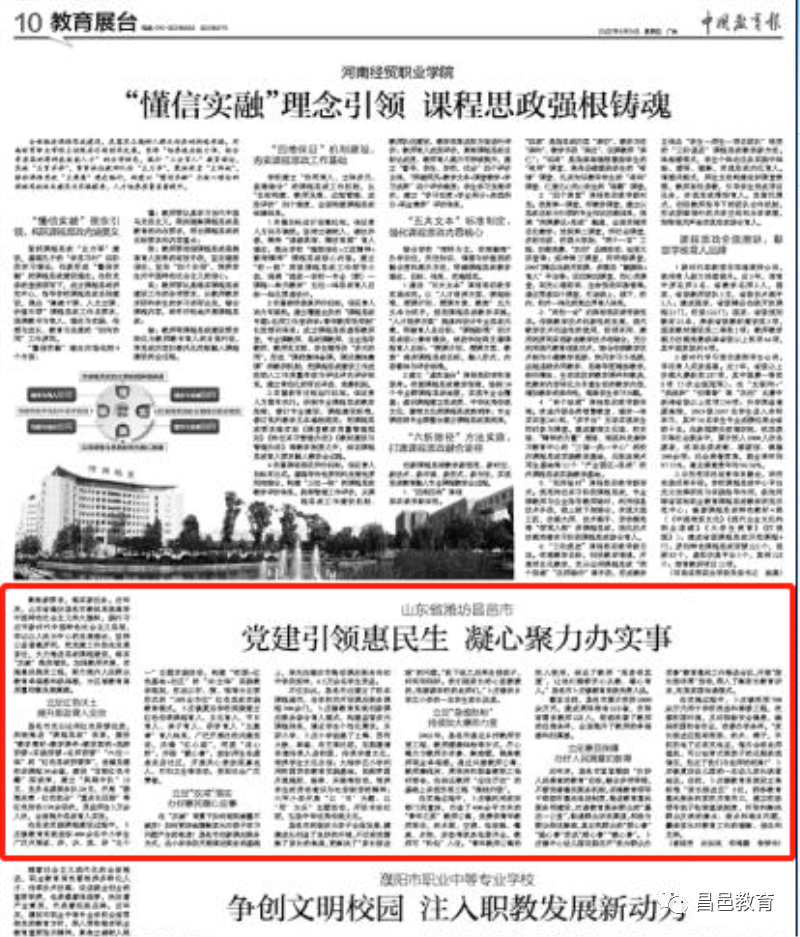 6月9日,《中国教育报》以《山东省潍坊昌邑市党建引领惠民生 凝心聚力办实事》为题,对我市坚持党建引领,做好惠民惠师实事,为区域教育高质量均衡发展赋能典型做法进行了刊发推介。现予以全文转发,敬请关注。