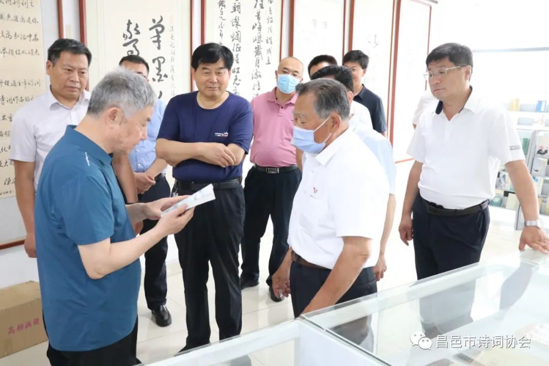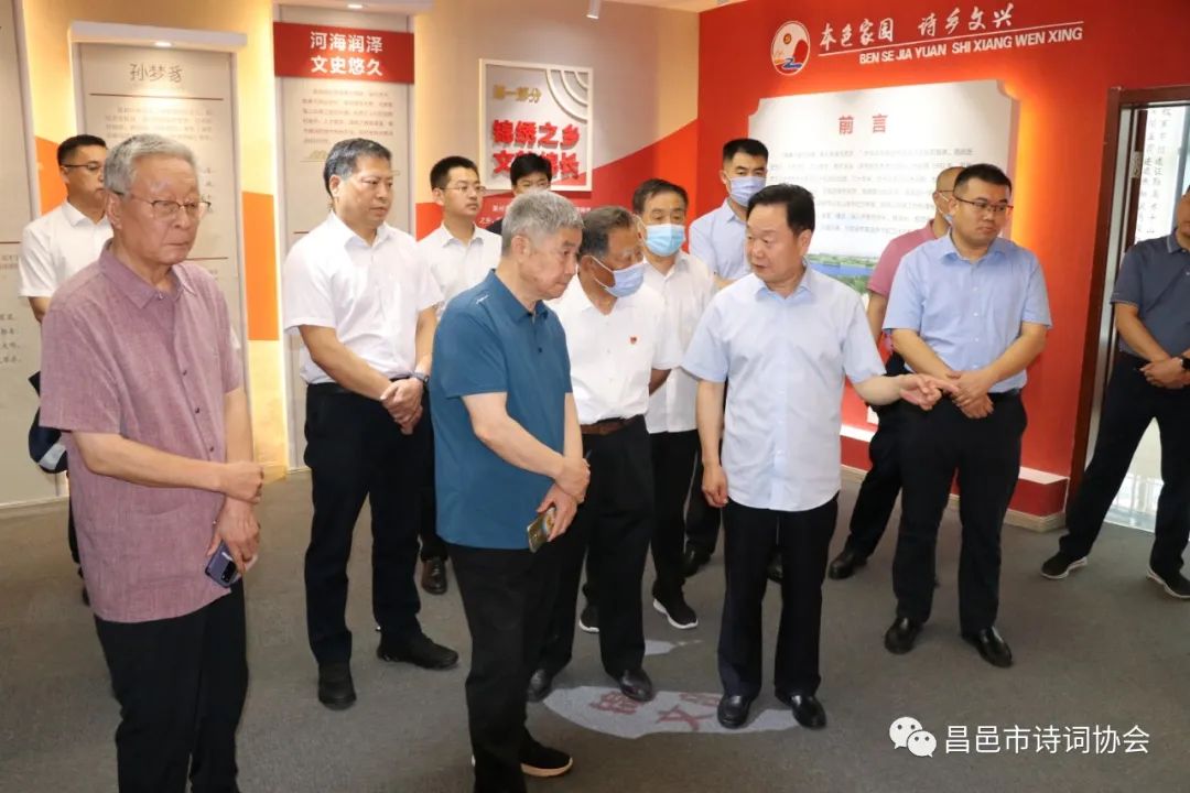 6月9日上午,山东诗词学会会长、山东省政府原副省长、山东省政协原副主席赵润田,山东诗词学会副会长兼秘书长孙义福,山东省供销社原党组副书记、监事会主任许广民,山东诗词学会副秘书长兼合作部长郭秀生,潍坊市政协原副主席刘树亮来昌邑市文山诗书社参观,我市市委书记李玉祥,市政协主席李明杰等同志陪同参观。