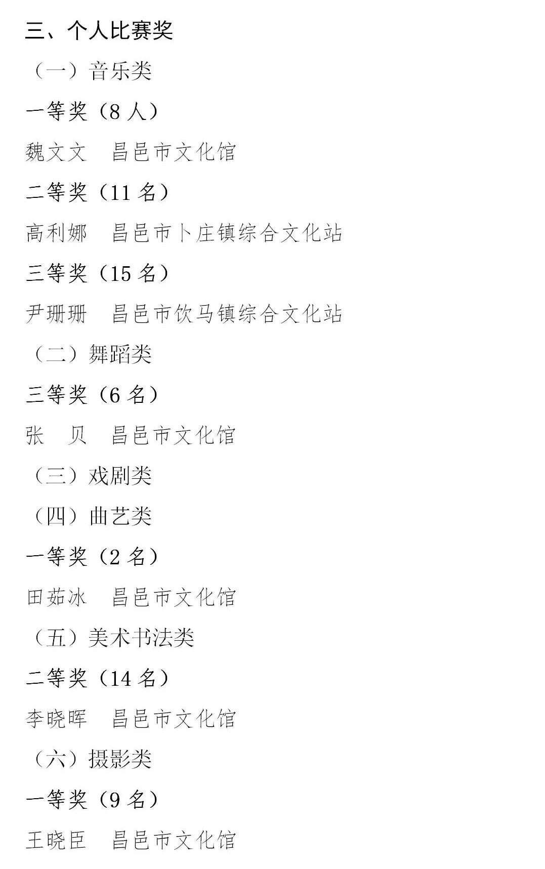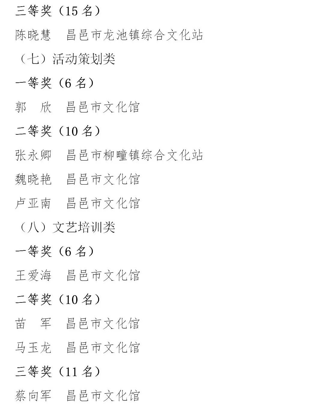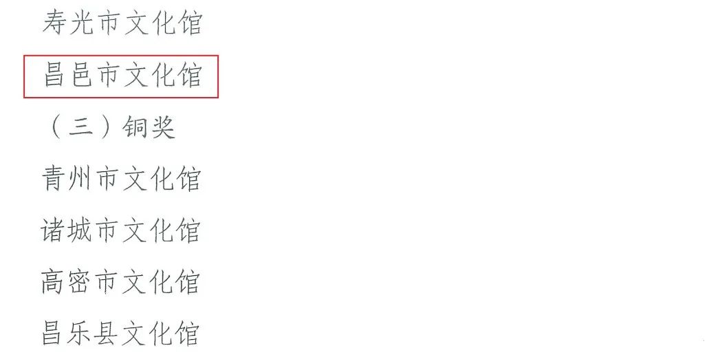 6月9日,潍坊市文化和旅游局公布首届全市文化馆(站)业务技能大赛获奖名单,昌邑市文化和旅游局获优秀组织奖,昌邑市文化馆获团体比赛银奖,来自昌邑市文化馆(站)业务人员荣获个人比赛类一等奖5名,二等奖7名,三等奖4名。