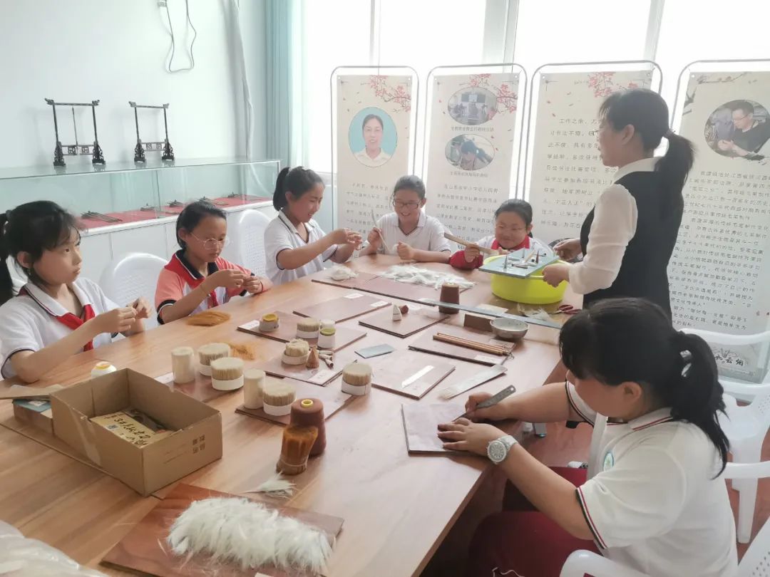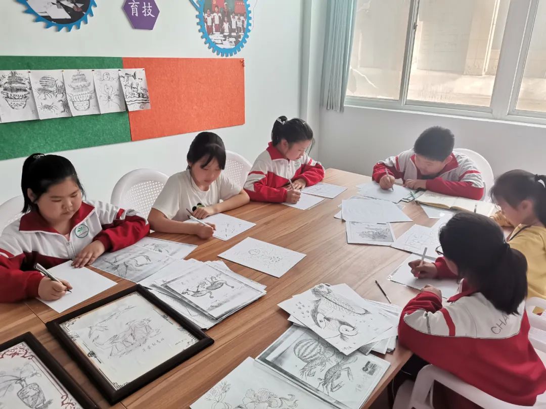 聚焦“做好红色教育,培养时代新人”发展目标,融合丰富的红色文化资源,推动“一馆一坊三室一长廊一基地”整体建设,拓展提升乡村“复兴少年宫”基础阵地。校内建有红色剪纸教育馆、毛笔制作工作坊、剪纸名师工作室、硬笔画工作室、墨香展览室等特色功能室,把中华优秀传统文化、党的历史以可观可感的形式融合在一幅幅剪纸作品和画作中,为学生提供身边的红色实践场馆。建有120平米的劳动农具展览长廊,展示了不同时代的农具200余件,并开发劳动教育基地,建成特色“龙乡少年农垦劳动园”,划分室外“花园、菜园、果园、植物园”等16个版块,让孩子们乐在其中,日常实践中深刻感受和传承艰苦奋斗、自力更生的劳动精神。