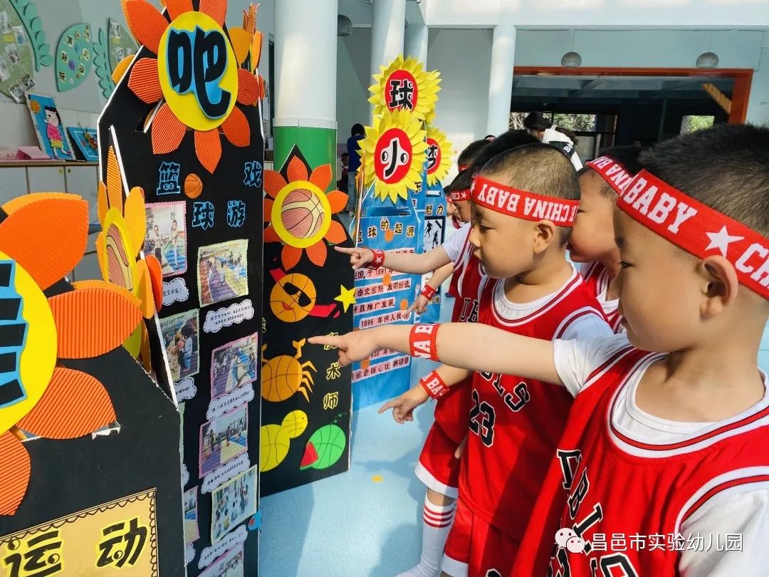 踱步园中,孩子们的足迹遍布各个角落,走廊里悬挂着孩子们自己绘制的各种图案的球,张贴着孩子们喜欢的球星,展板上有孩子们玩球的掠影,柔软的户外场地为孩子们安全玩球提供了保障。每个班级开设一块篮球专区,有篮球明星海报,篮球新闻每周播报。在这里,孩子们与自己喜欢的篮球明星对话,把听到的、看到的篮球趣闻与小伙伴们一起分享,小小篮球已经是孩子们爱不释手的玩伴。