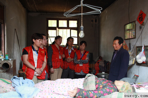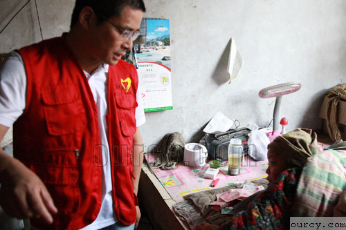 董建国今年55岁,因小儿麻痹症致残,独居,行走困难,靠用旧自行车改造的手摇三轮行动,村委提供两间旧办公室充其居所并为其提供糊口粮食。董建国尽管贫困残疾、无收入来源,但收拾得两间房子干净利索,听说我们要来探望,还特别患上了干净整洁的新衣服。看着大家带来的衣服和慰问品,拿着义工们热情捐助的爱心款,他连声说:“谢谢你们,谢谢你们,还为我花钱。”