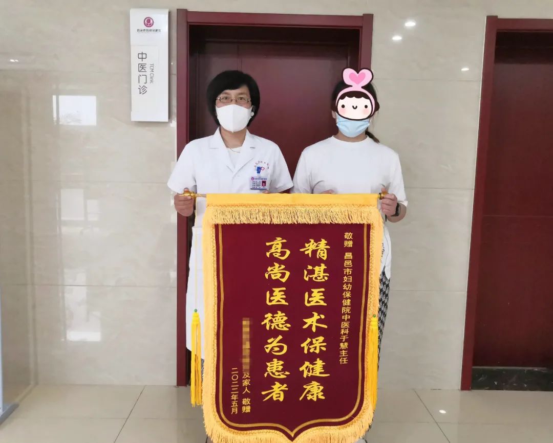 2022年6月1日,季女士将一面写有“精湛医术保健康高尚医德为患者”的锦旗送到了中医科于慧主任手中。对于中医科于主任给予自己的帮助,季女士不知如何表达,只能将感激之情寄予锦旗当中。