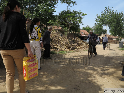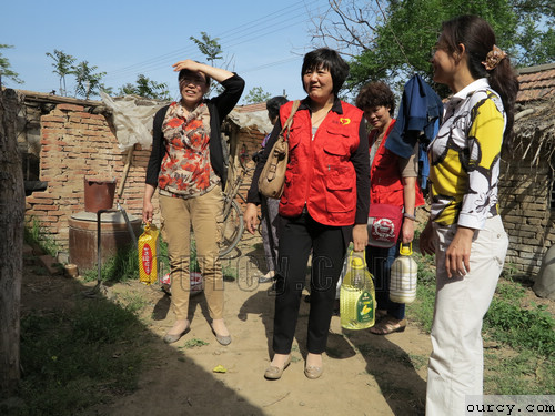 大家又来到姜大爷家。姜大爷幼年因患麻风病导致面部器官和身体残疾,为不连累别人,他终生未娶并坚持独居。如今年过七旬的姜大爷患上了哮喘病和心脏病,姜大爷的身体状况一直让他的义工“儿女”们担心。我们看到姜大爷家开着院门却屋门紧锁,正担心时却发现姜大爷孱弱地骑着锈迹斑斑的大金鹿车子过来,原来姜大爷去浇地了。义工姜在玉担心地埋怨大爷这么大年纪了还去浇地,可大爷没有收入,没有子女,不得不坚持种地以维持生计。我们多次要求姜大爷家里有重活时给我们电话,但不愿连累别人的姜大爷却从来没有找过我们一次。看到姜大爷裤腿上的泥巴,大家很是伤心。姜大爷一次次的重复:“你们光来看看吾我就很高兴,别拿东西和钱了。”但我们真的想把姜大爷当家中长辈看待,真的在努力以儿女一样的心态关心他,以送给他儿女关爱的温暖。