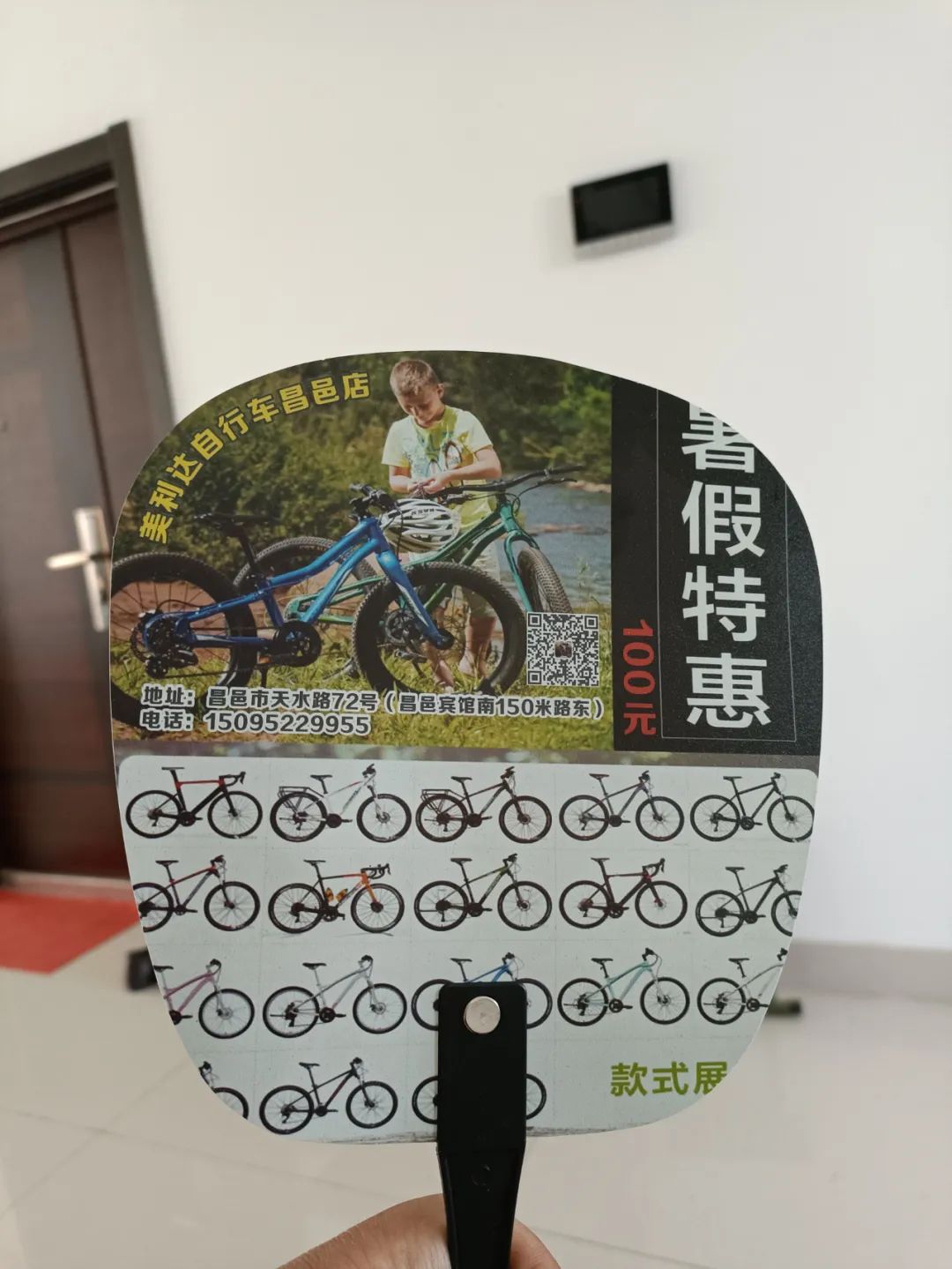 然后我看着这把匠心独具的小扇子,心想昌邑美利达做宣传看来是认真的,小扇子反面印有“可顶100元现金”用的字样——我可不是广告啊!美利达不认识我,我也不认识美利达,我只是从这把“下了本钱”的小扇子觉得,昌邑MERIDA有点境界!最起码不是狂发朋友圈要求转发点赞,或者是找人发广告纸之类!