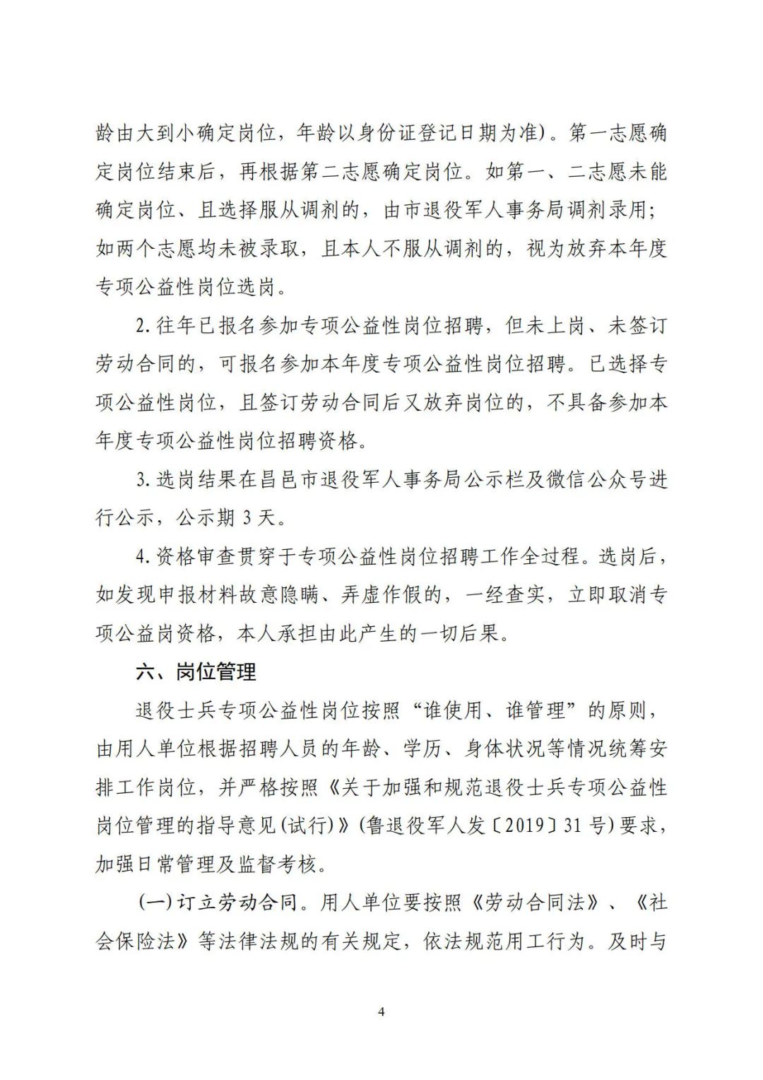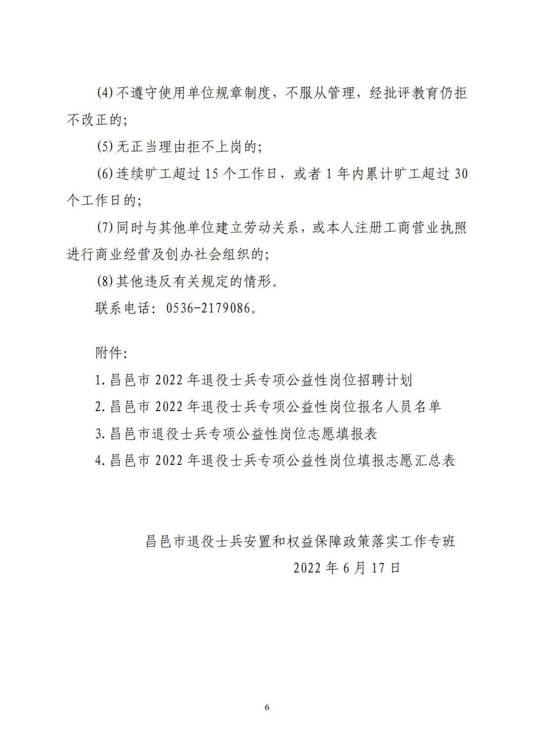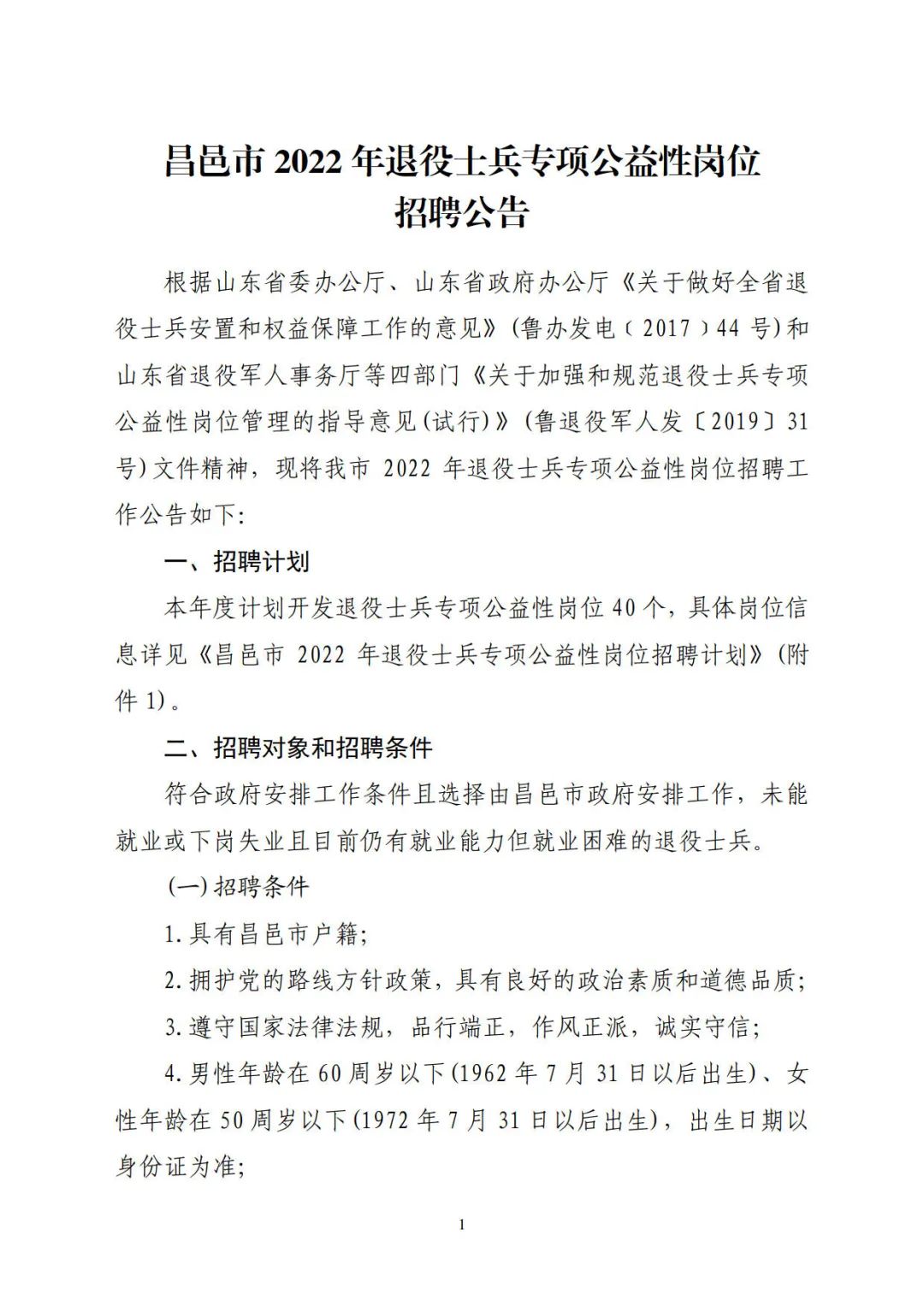昌邑市2022年退役士兵专项公益性岗位招聘公告