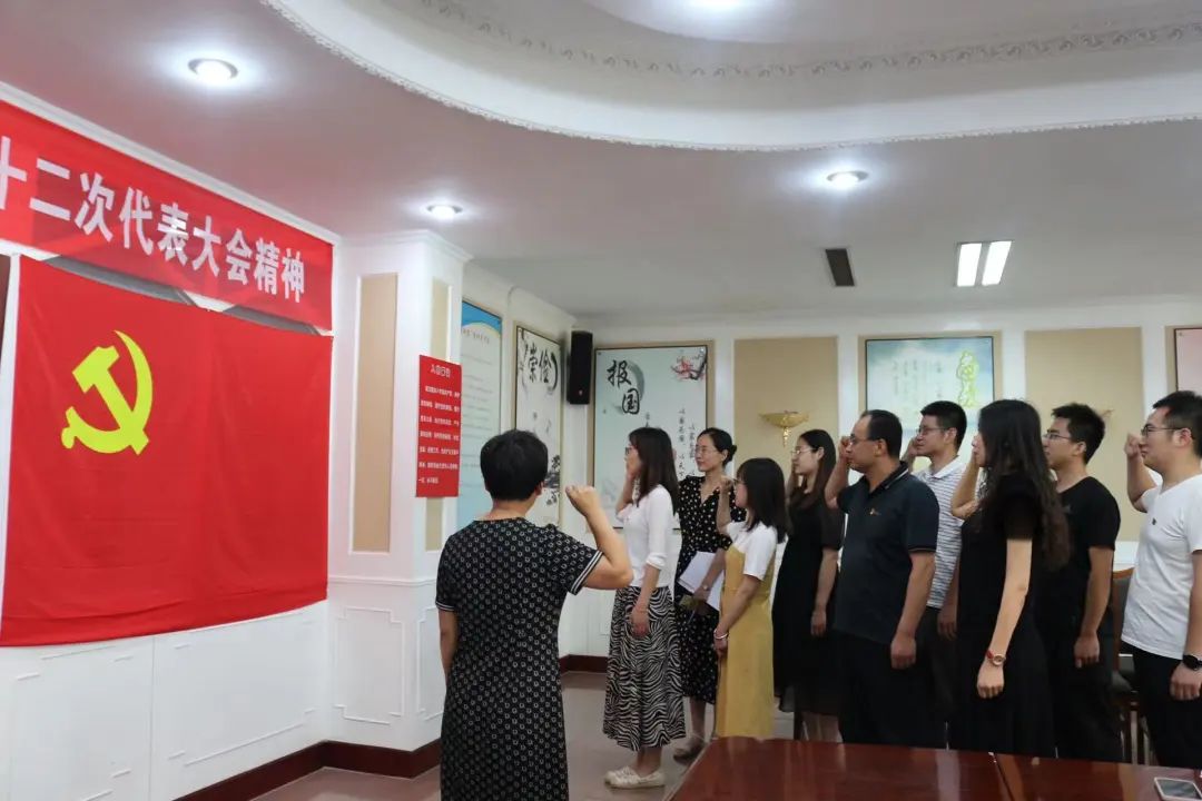 6月22日下午,昌邑市财政局机关第二党支部在党员活动室开展了“重温入党誓词 践行使命担当”主题党日活动,在支部书记赵京伟同志带领下,全体党员及入党积极分子,面对鲜红党旗,重温入党誓词。
