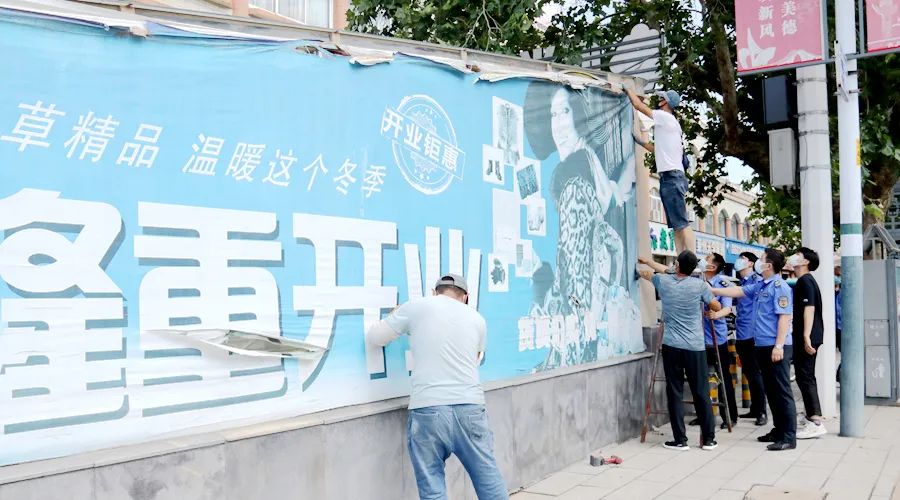 对部分残缺锈蚀、破旧污损等影响市容的广告牌匾进行集中拆除,消除安全隐患,共拆除广告牌匾10余块。