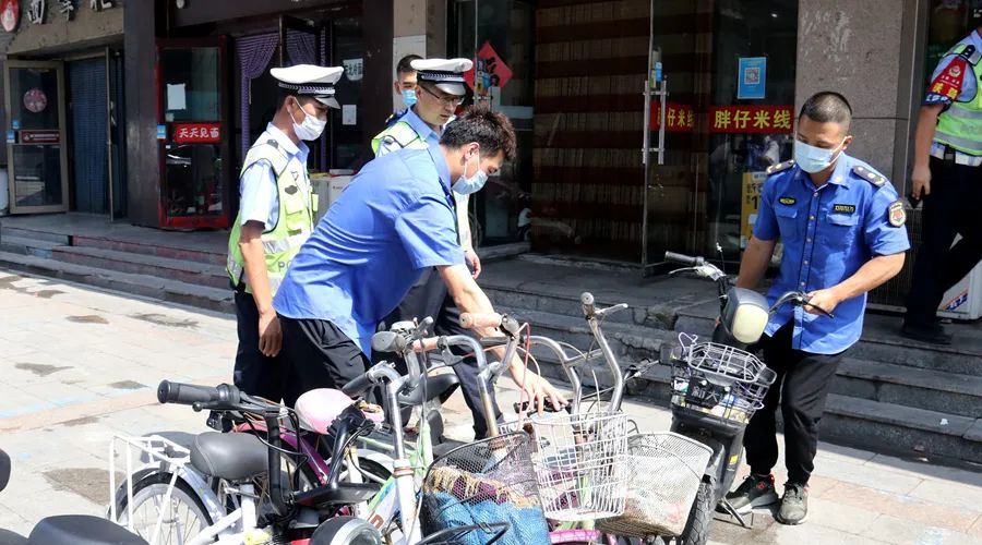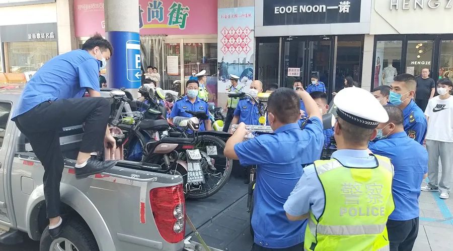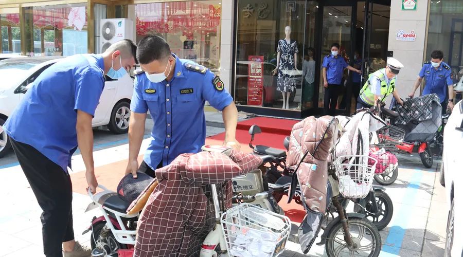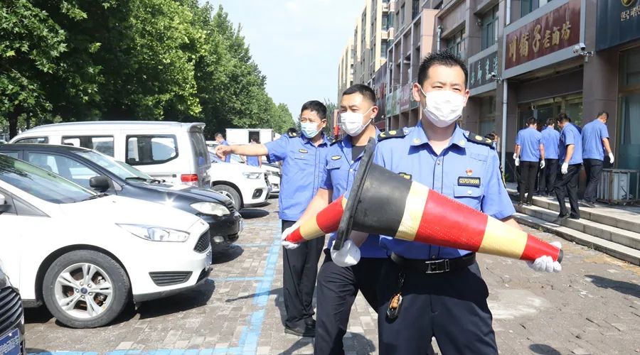 配合市公安局交警大队,对沿街门店商家随意侵占公共停车位物品进行了清理,共清理占道路锥30余个,规范乱停乱放车辆100余辆,证据保存违规停放车辆10余辆。