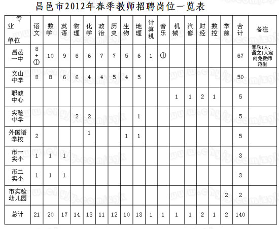 招聘范围:2012届全日制师范类本科及以上学历毕业生,职业学校教师招聘可不受师范类限制,但必须在录用后三年内取得相应的教师资格证书。本科生原则上为昌邑籍生源,研究生不限生源地。