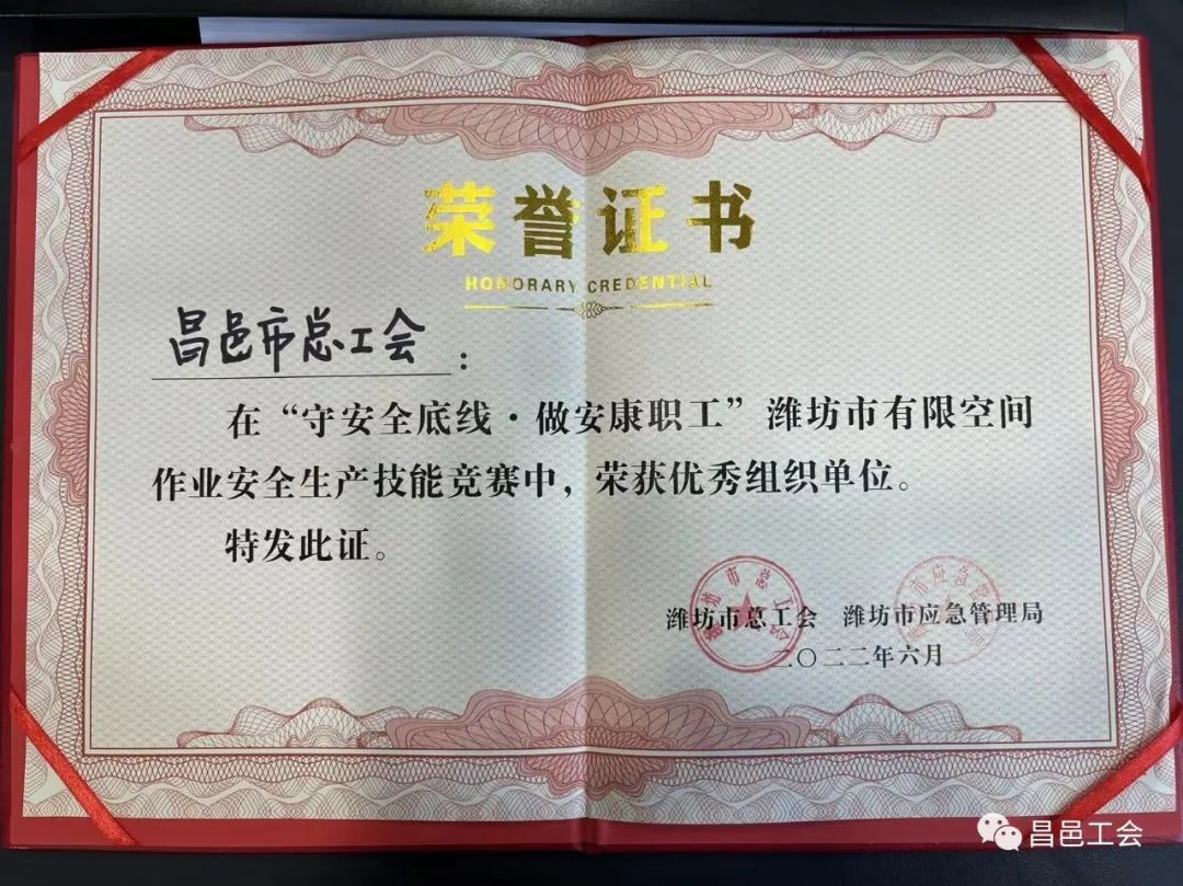 此次竞赛历时近一个月,经历了县市区选拔赛和市决赛两个阶段。由昌邑市总工会和市应急管理局共同组织、选拔、培训的同大海岛有限公司代表队经过两天的激烈角逐,在此次比赛中获得二等奖佳绩,昌邑市总工会荣获“优秀组织单位”。