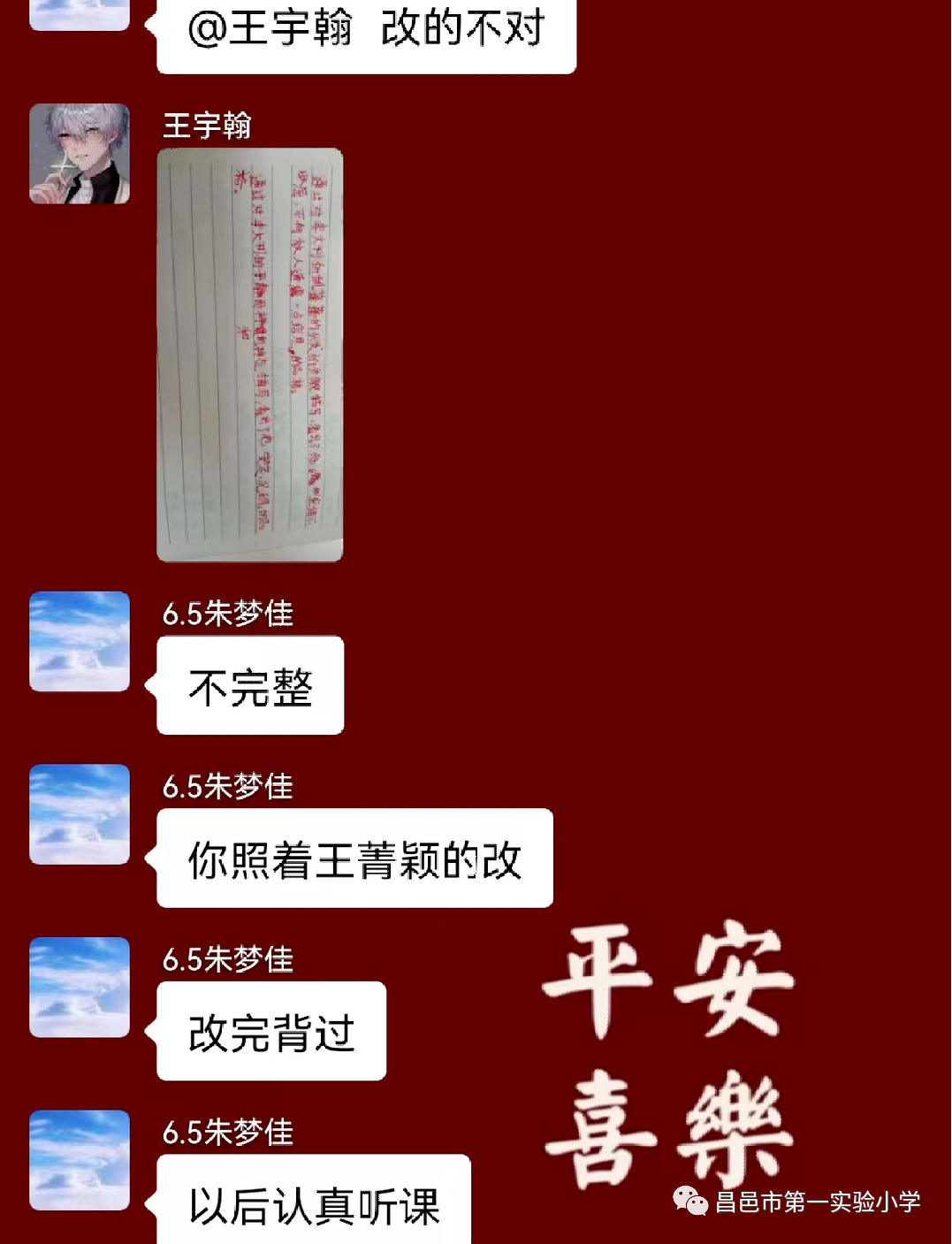 当疫情来临,孩子们都开始居家学习,身兼组长的她每天都会及时点名,确保组里每一位同学都及时到课;每次小组讨论环节,她总会不厌其烦地给每一位组员指出问题,帮助修正,甚至经常牺牲自己的休息时间,为组员答疑解惑;每次老师布置任务,她总是在群里反复提醒,确保每位组员都明确任务要求。