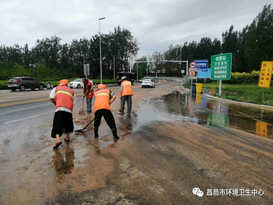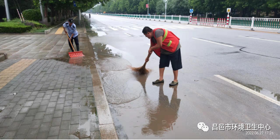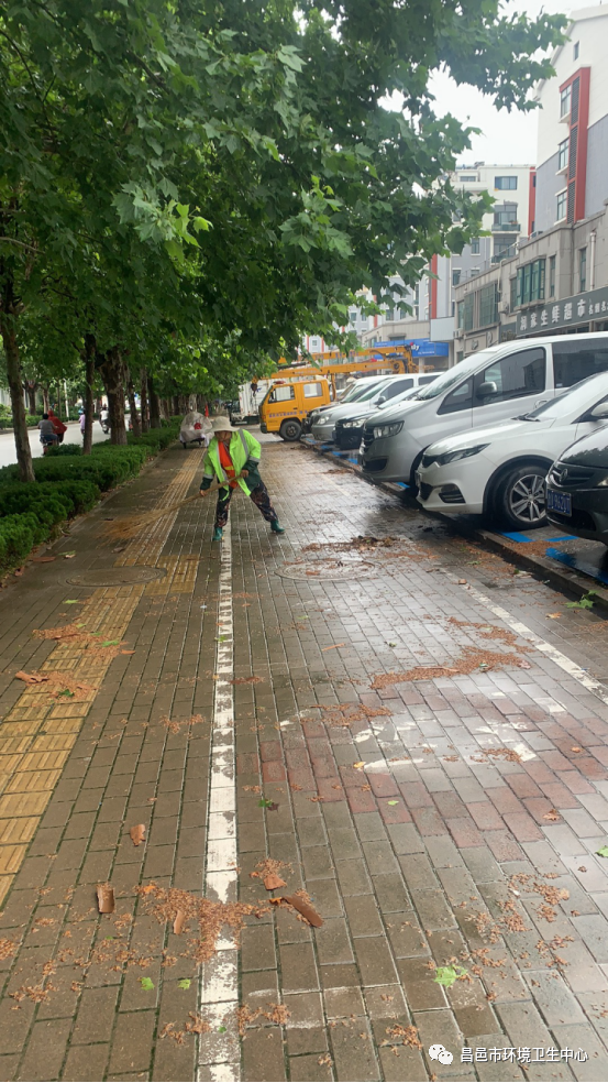发挥人机联合作业优势,调动30余辆机扫车以“四横四纵”8条主干道为中心,按照先主道、后周边、背街小巷、城乡结合的作业顺序,进行机械化清扫作业;另一方面对人行道、辅路、路口进行人工普扫,最大程度减少强降雨对城市环境带来的影响。