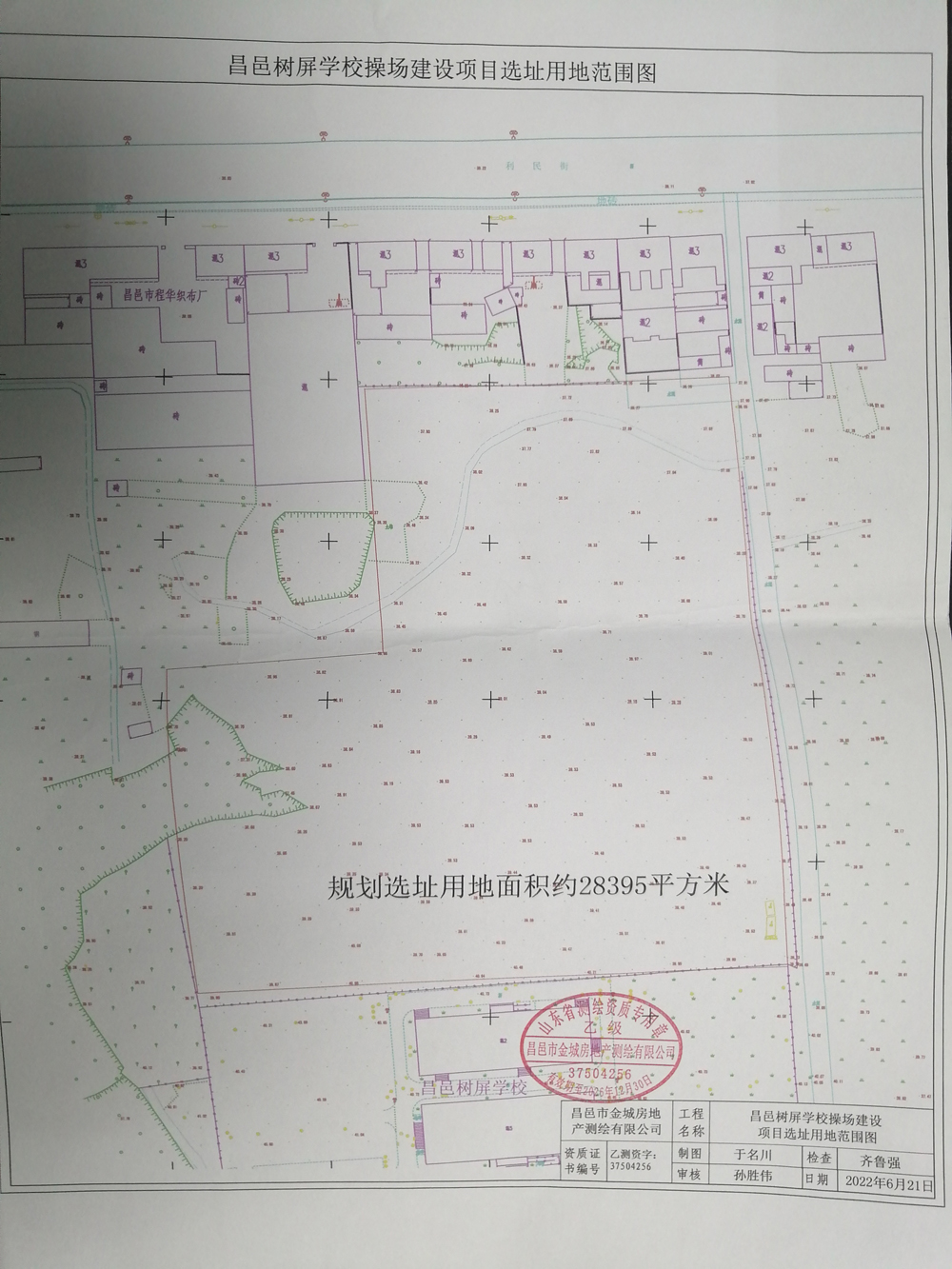 1、建设项目名称:昌邑树屏学校操场建设项目