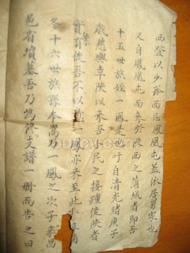 近日,陕西阎良区谭家村的张所义大叔给我们打来电话,说初五我们去村子,走了以后他才知道。因为没有见到我们而倍感遗憾。张大叔说就在年前不久,发现了他爷爷从山东老家带过来的家谱,并非得要我们看看,他说他侄子家里的电脑有镜头,比电话好,可以看到人。他专程跑到侄子家里,在QQ上和我们视频交流了好长时间。
