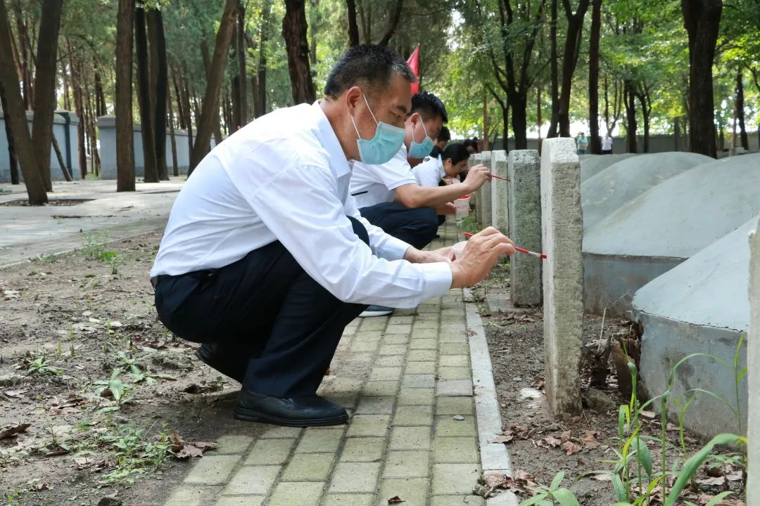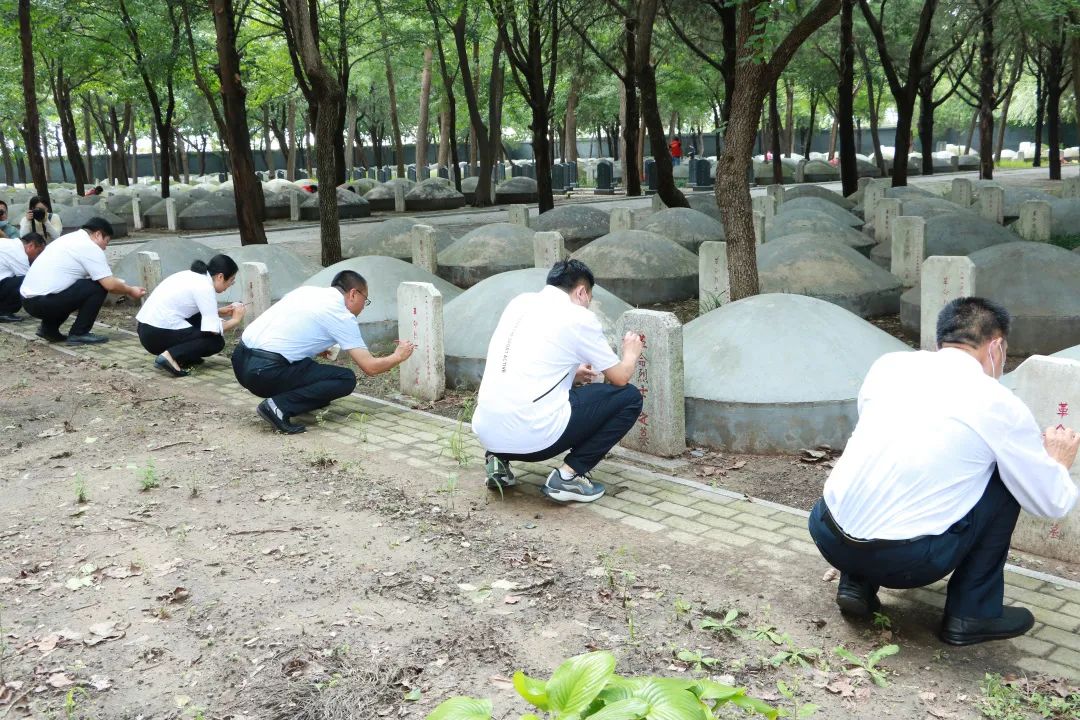青山无言,丰碑永存。在烈士墓区,党员们认真地描红烈士墓碑,缅怀在战斗中牺牲的革命先烈。