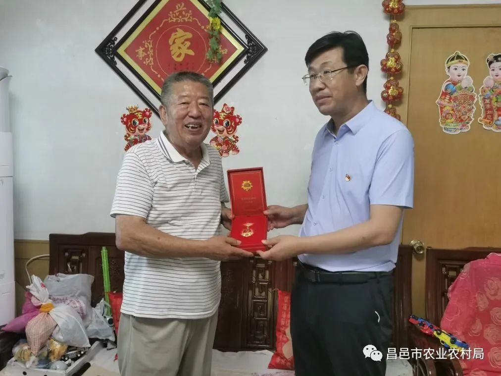 7月1日上午,市农业农村局党组主要负责人带队走访慰问老党员,为他们颁发“光荣在党50年”纪念章。在党的二十大即将召开之际,通过颁发“光荣在党50年”纪念章,传递党组织对老党员做出贡献的高度评价和充分肯定。同时,市农业农村局党组将持续做好精准服务老干部工作,把党中央的关怀温暖及时传递给每一位老党员、老干部。