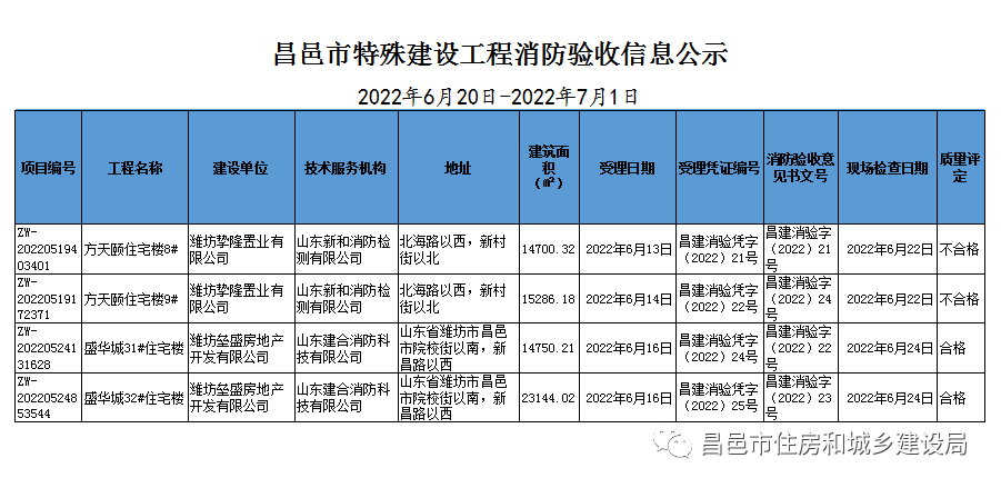 首页 行政动态 昌邑市特殊建设工程消防验收信息公示220620-220701 昌邑市特殊建设工程消防验收信息公示220620-220701 昌邑之窗 发布于 2022年7月3日 评论关闭 阅读(508) 根据有关规定,现将2022年6月20日——2022年7月1日昌邑市特殊建设工程消防验收信息公示如下:
