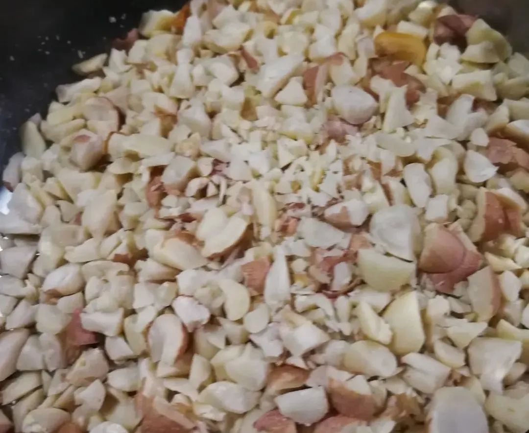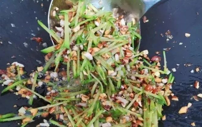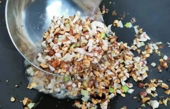 将萝卜切细丝,花生米用刀剁碎或是用蒜臼子捣碎,姜切米,锅中加油,加入姜、花生碎炒香,然后加入萝卜丝略炒,加入水,调好口味,锅开后加入面芡,淋入蛋花,一锅美味的花生萝卜咸汤就完成了。