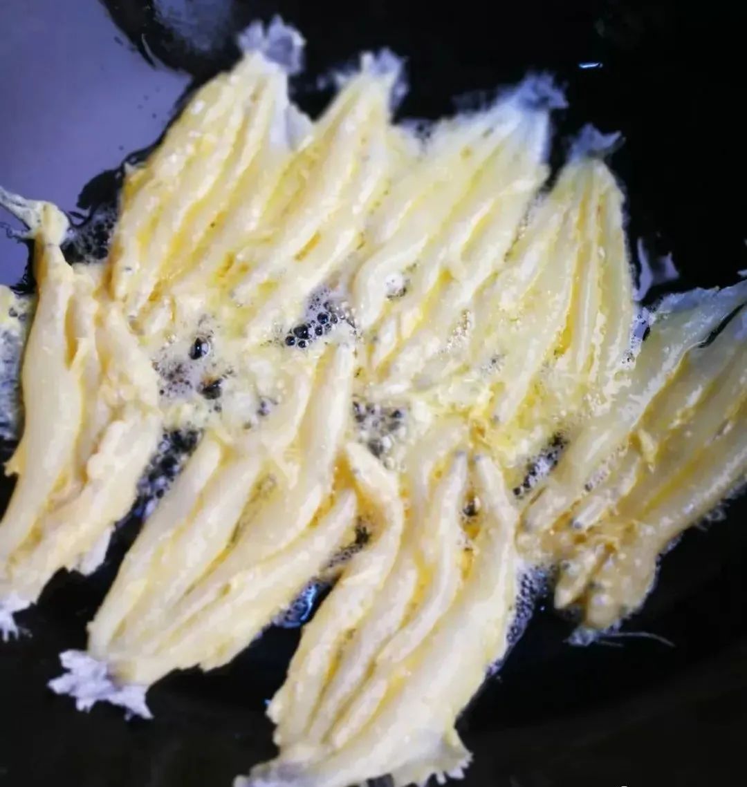 银鱼可做汤,炸,但作为昌邑本地人最喜欢的还是煎,把银鱼粘上面粉,数条捏在一起,先煎后炖,加入醋,味道鲜美,促进营养成分能被人体充分吸收。