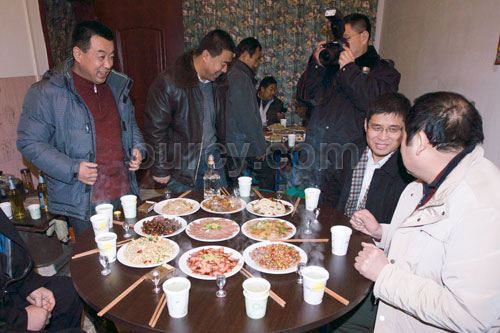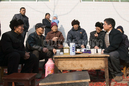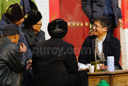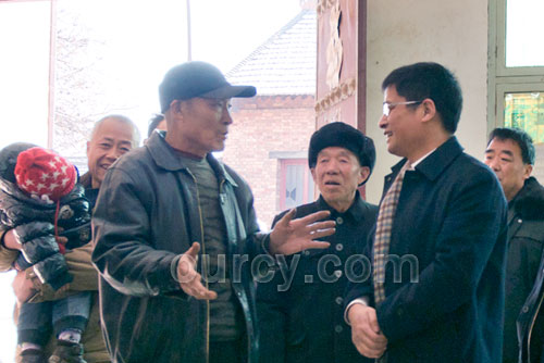 跟随英长林迎接我们的车子,从蒲城县城区赶往太平村,在国道转往村子的路口,村中的乡亲们已经摆好了鞭炮烟花,敲着锣鼓迎接我们的到来。太平村的乡亲们在鞭炮锣鼓声中迎接我们,锣鼓队开到,跟随村中车队驶进节日中的太平村。我们拿出家乡的乾隆杯、大饽饽和昌邑建设局新出的昌邑画册。乡亲们把大饽饽摆上供桌,让除夕请回家的先人感受到山东老家熟悉的食品。青年人争着看故乡的画册,看昌邑城市的照片,感受未曾谋面的故乡城市的样子。