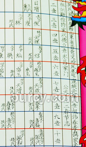 英秀山老人家挂上了年前从山东请来家堂,并在家堂上标注了先祖迁徙的信息。