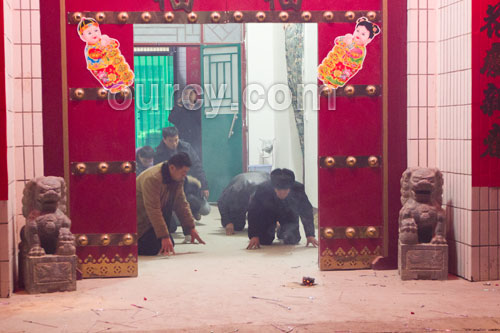 最后回到正厅对着家堂拜先人,然后去村口放鞭烧纸叩头把先人送出村子。