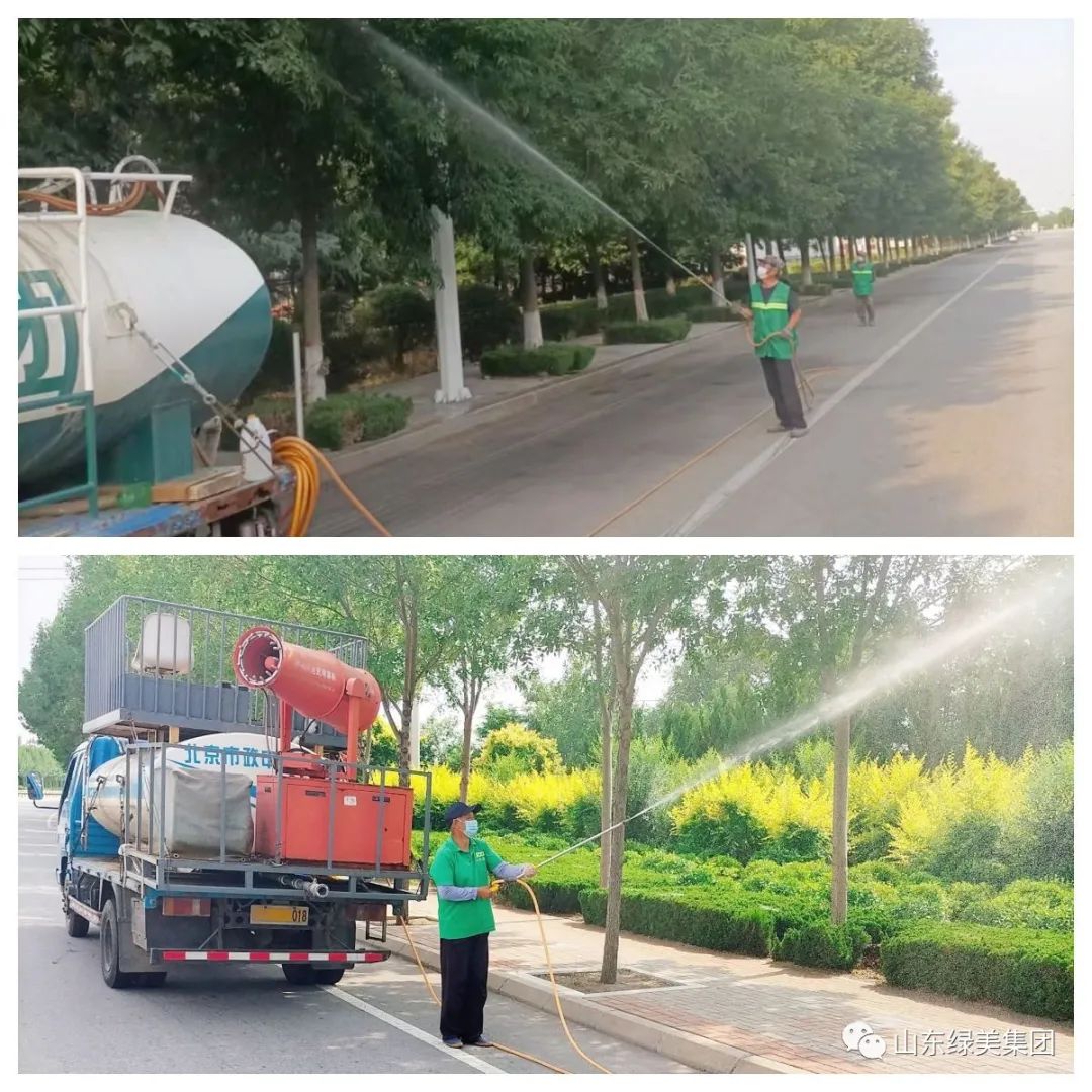 二是强化病虫害防治工作。时下是病虫害的高发期,也是防治病虫害的关键时期,在“预防为主,防治结合”的原则下,雾炮车与人工作业合理搭配,及时对绿地植物等进行喷药,保证了苗木健康生长。