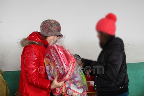 1月6日,昌邑之窗刊登了昌邑妇联提供的26个贫困学生信息,让爱心义工和市民在网上自助认捐,捐助这些孩子过年棉衣。仅33个小时,26个女童全部被爱心义工和市民认捐。 1月12日上午,大家带着购买的爱心棉衣、文具、书包、压岁钱等在市妇联的组织下,来到学校,将新春礼物赠送给可爱的孩子们。(为保护孩子隐私,对孩子照片做了模糊处理)